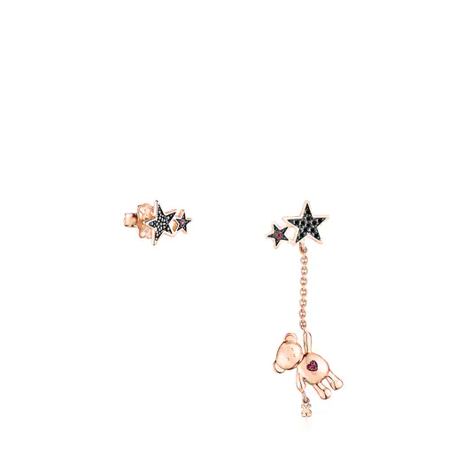 Shine bright with TOUS! Create a dazzling look with these asymmetric earrings in rose silver vermeil with spinels and rubies from the Teddy Bear Stars collection.