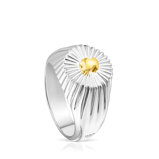 Silver and silver vermeil Virtual Garden Signet ring with bear