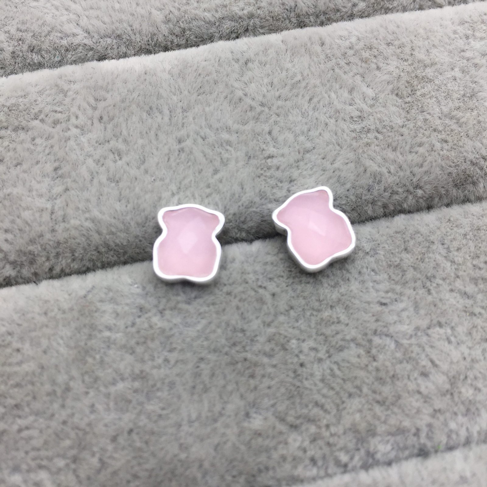 TOUS Color earrings in sterling silver and faceted rose quartz. Press hook clasp.