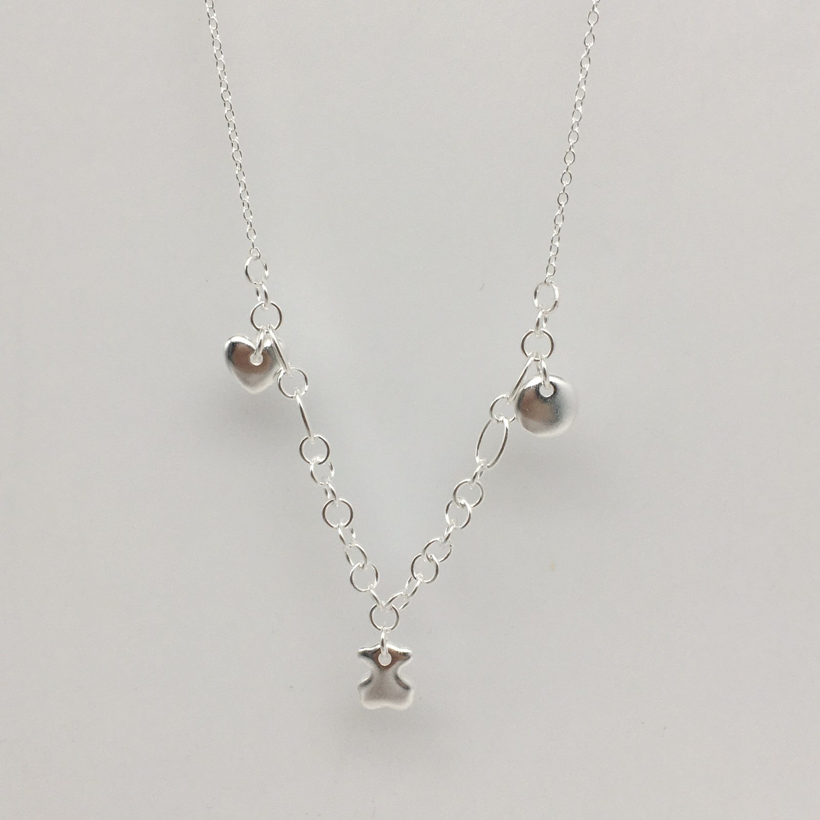 The unique, irregular surface and texture of the Moon inspire the Luah collection, and this necklace in sterling silver with iconic charms like the bear, heart and Moon, united to create the best synergy.