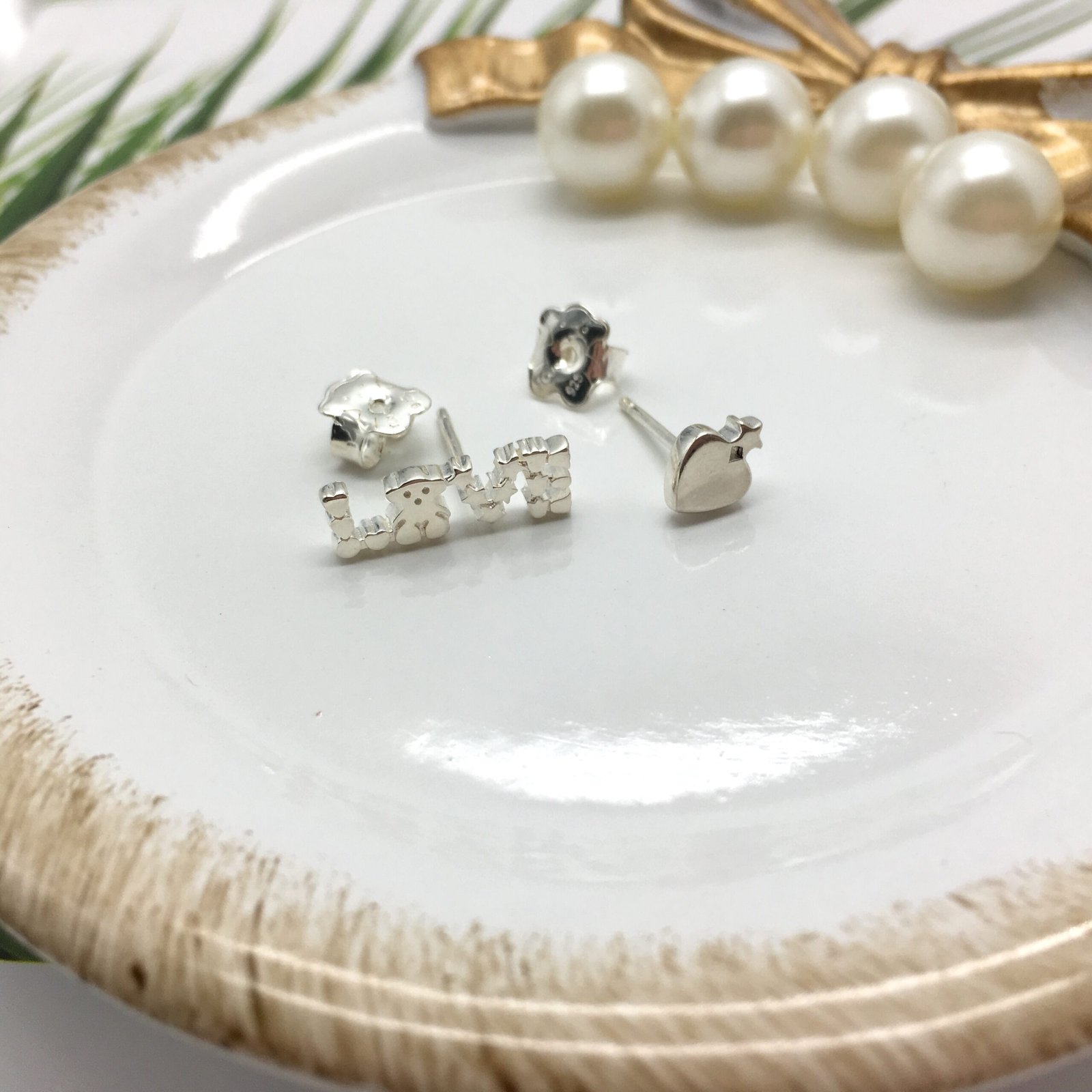 TOUS San Valentín heart & love earrings in sterling silver. Push back. Size: 0.5 – 1.6 cm.
