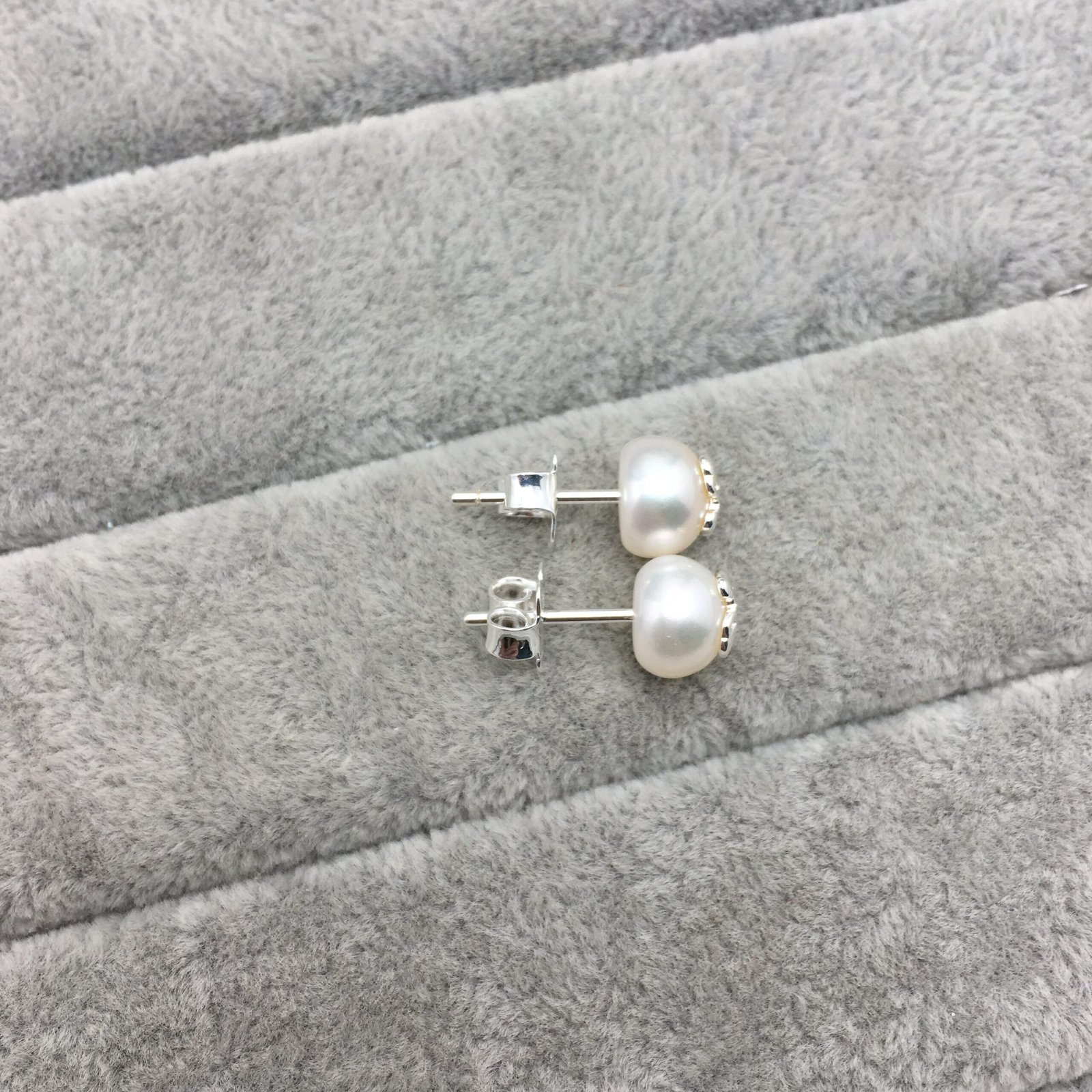 A fun classic. All the elegance of pearls and a trendy touch with your favorite icon. These silver earrings are very wearable, perfect to match any style.