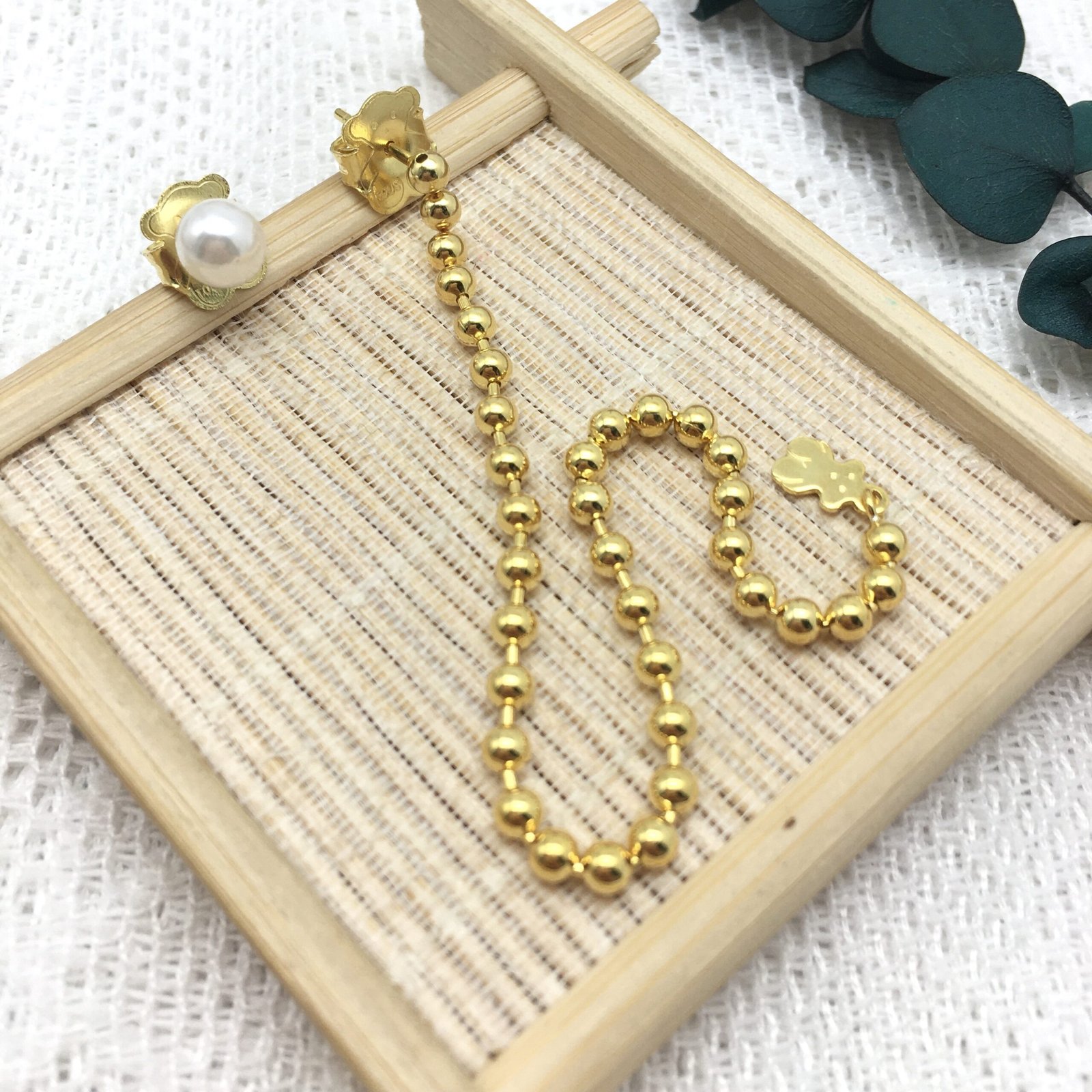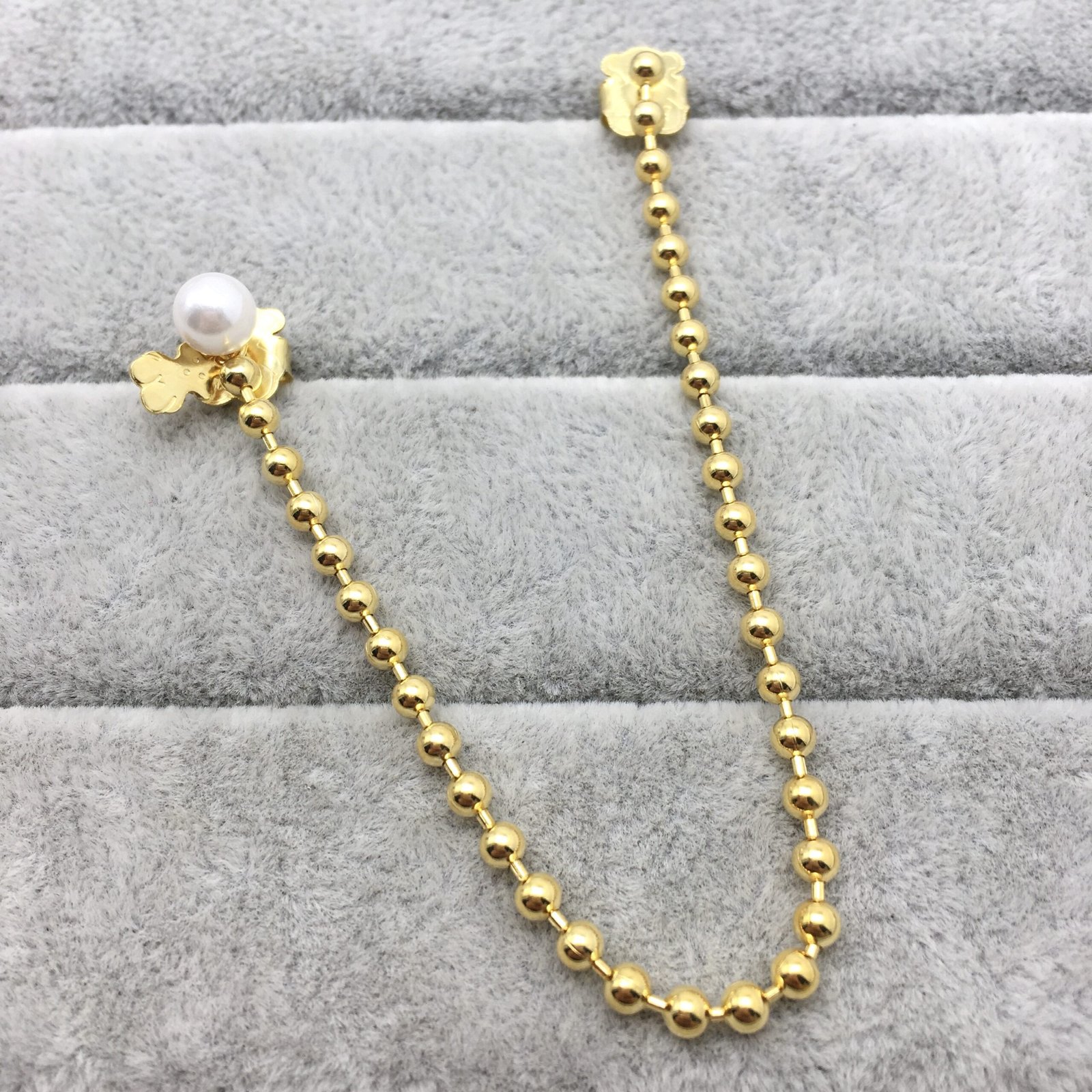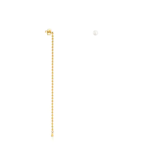 TOUS Gloss asymmetric earrings in silver vermeil; one 14 cm long with 3 mm ball chain and 4.5 mm bear on the end;