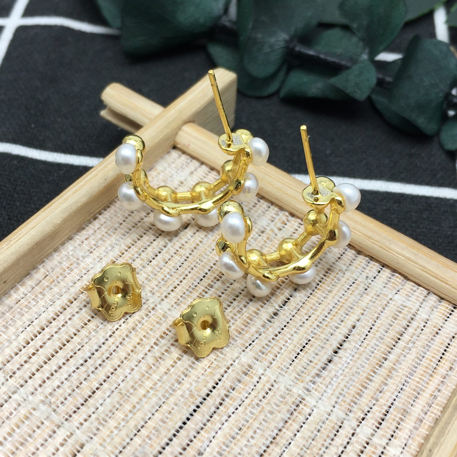 The unique and myriad shapes of nature inspire these silver vermeil earrings with pearls from the Gloss collection.