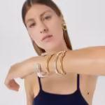 Sculptural silhouettes with pure, clean lines are the design’s main attraction in this silver vermeil bracelet from the Plump collection that recreates everyday motifs of nature and fishing, turning them into contemporary, chunky jewelry.