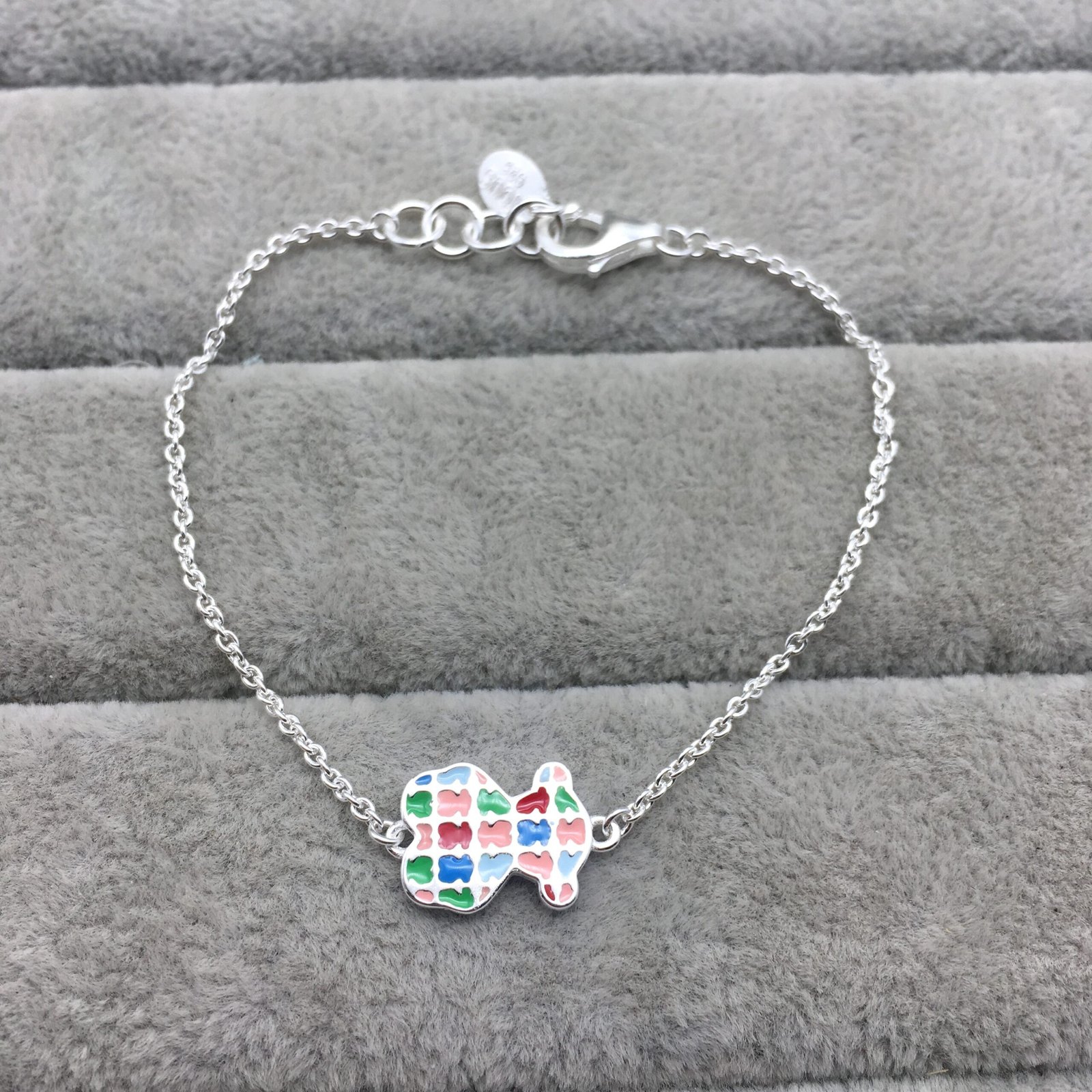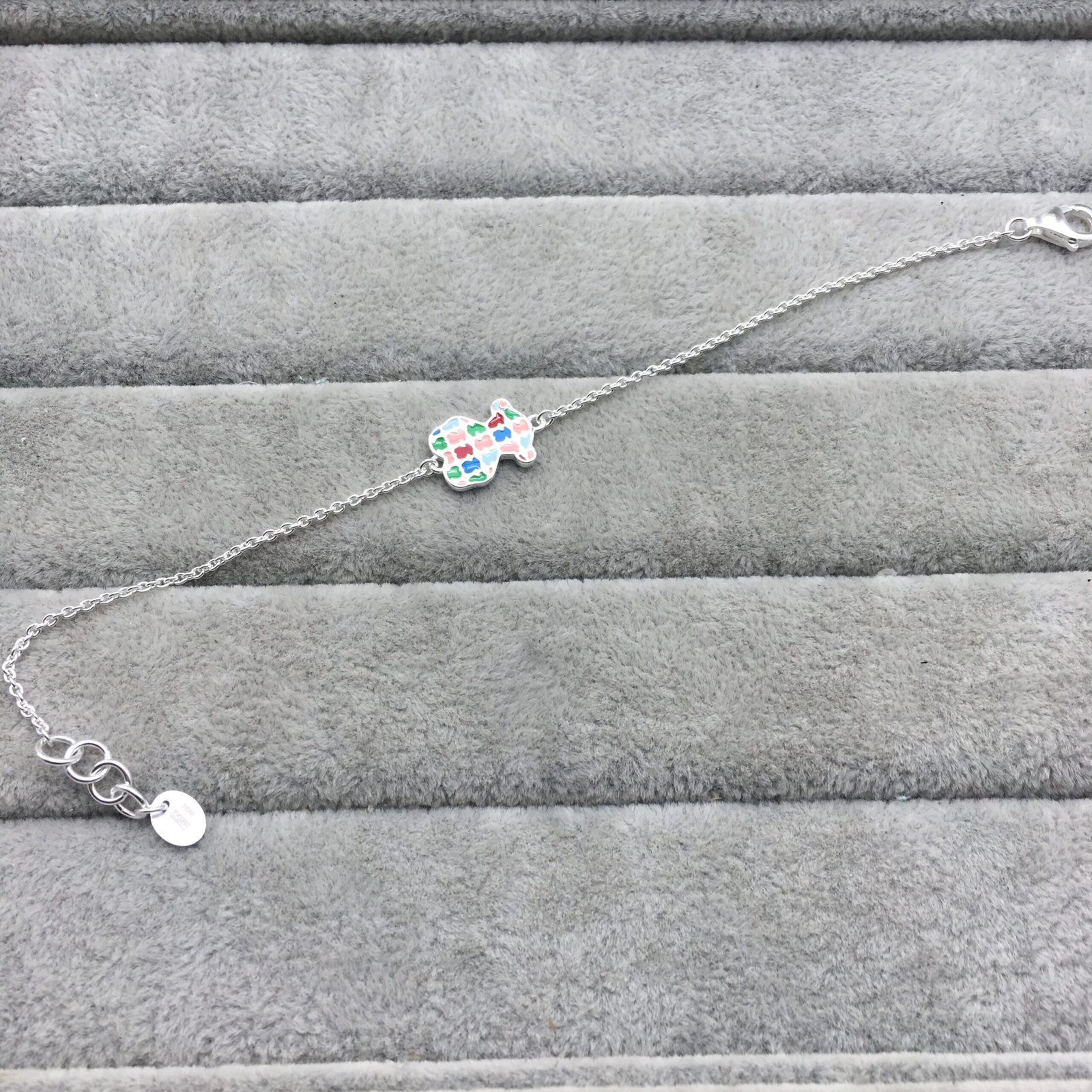 TOUS Tartan bracelet in sterling silver with colored enamel bear print. Size: 1.2 cm. Length: 17.5 cm.