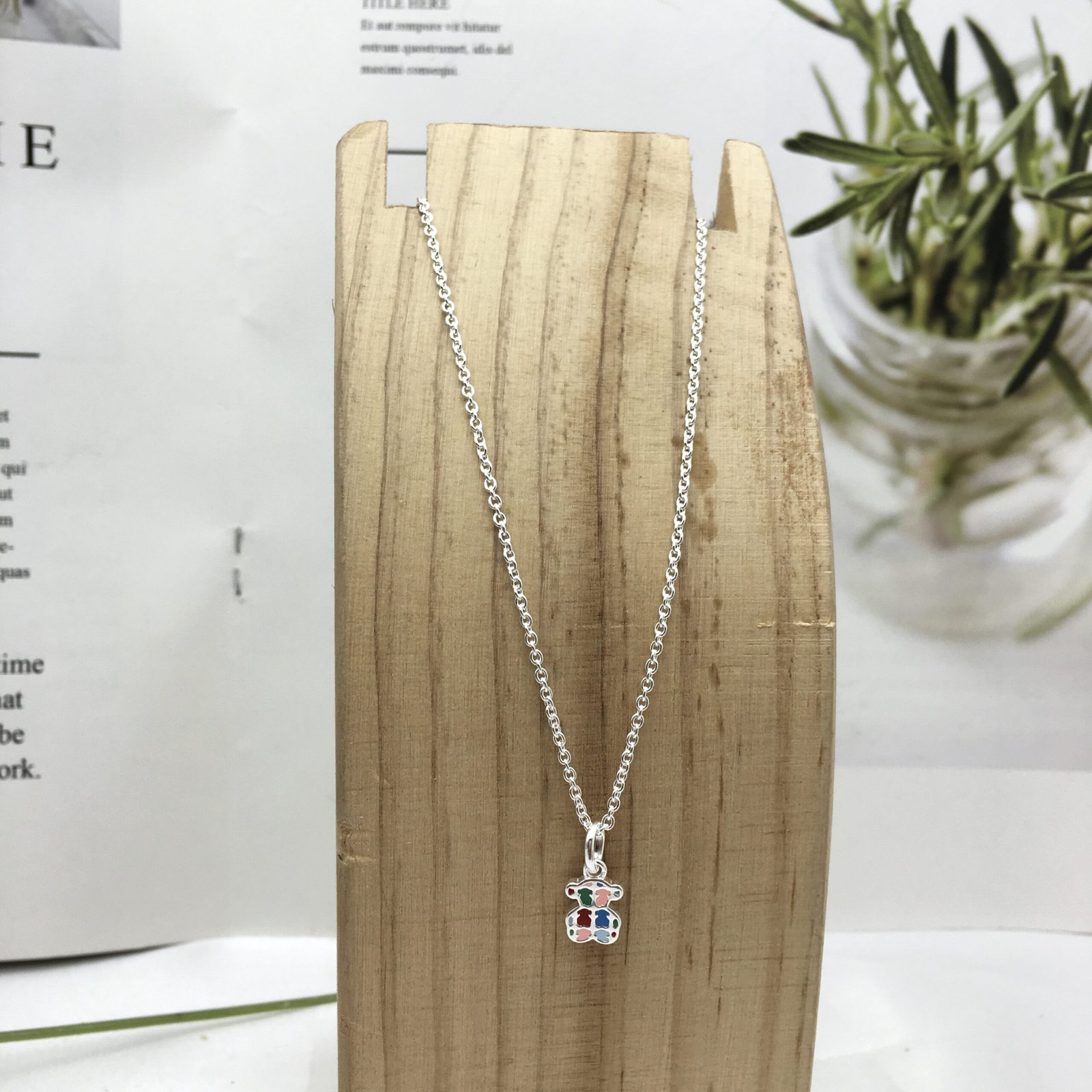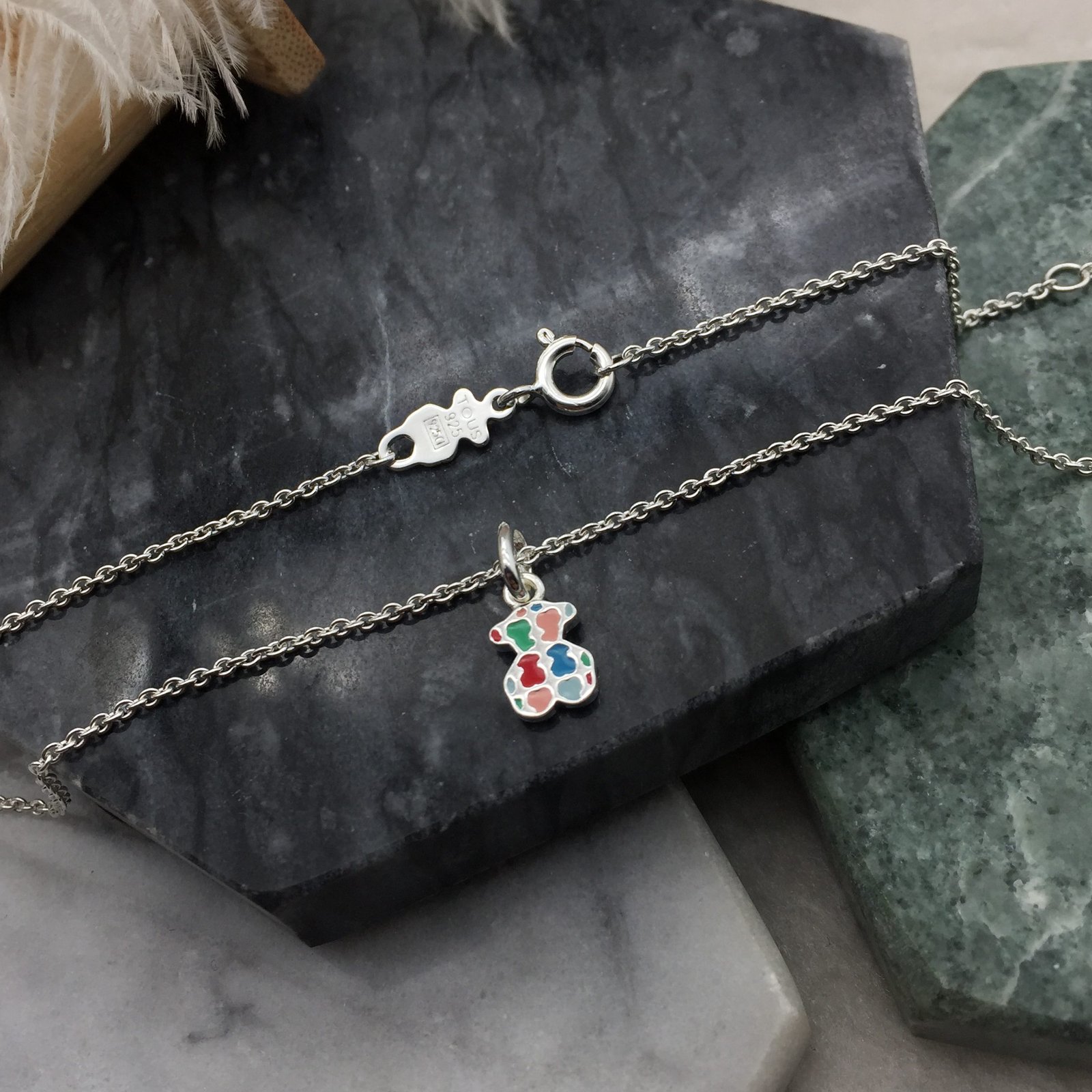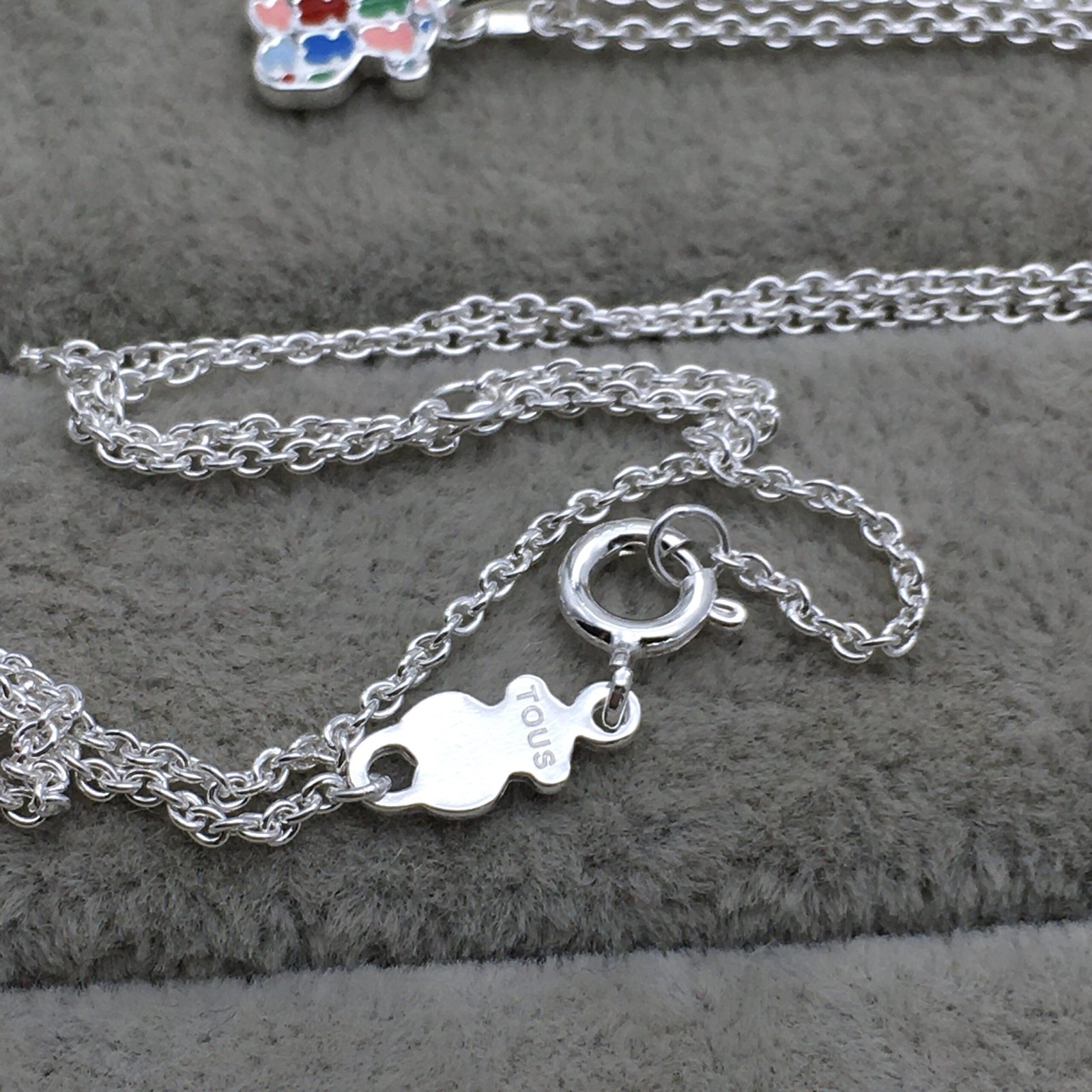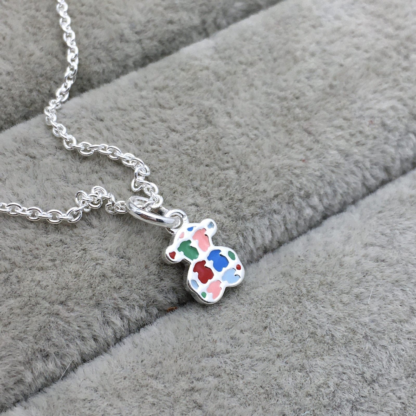 TOUS Tartan Necklace in sterling silver with colored enamel bear print. Size: 0.8 cm. Length: 45 cm.