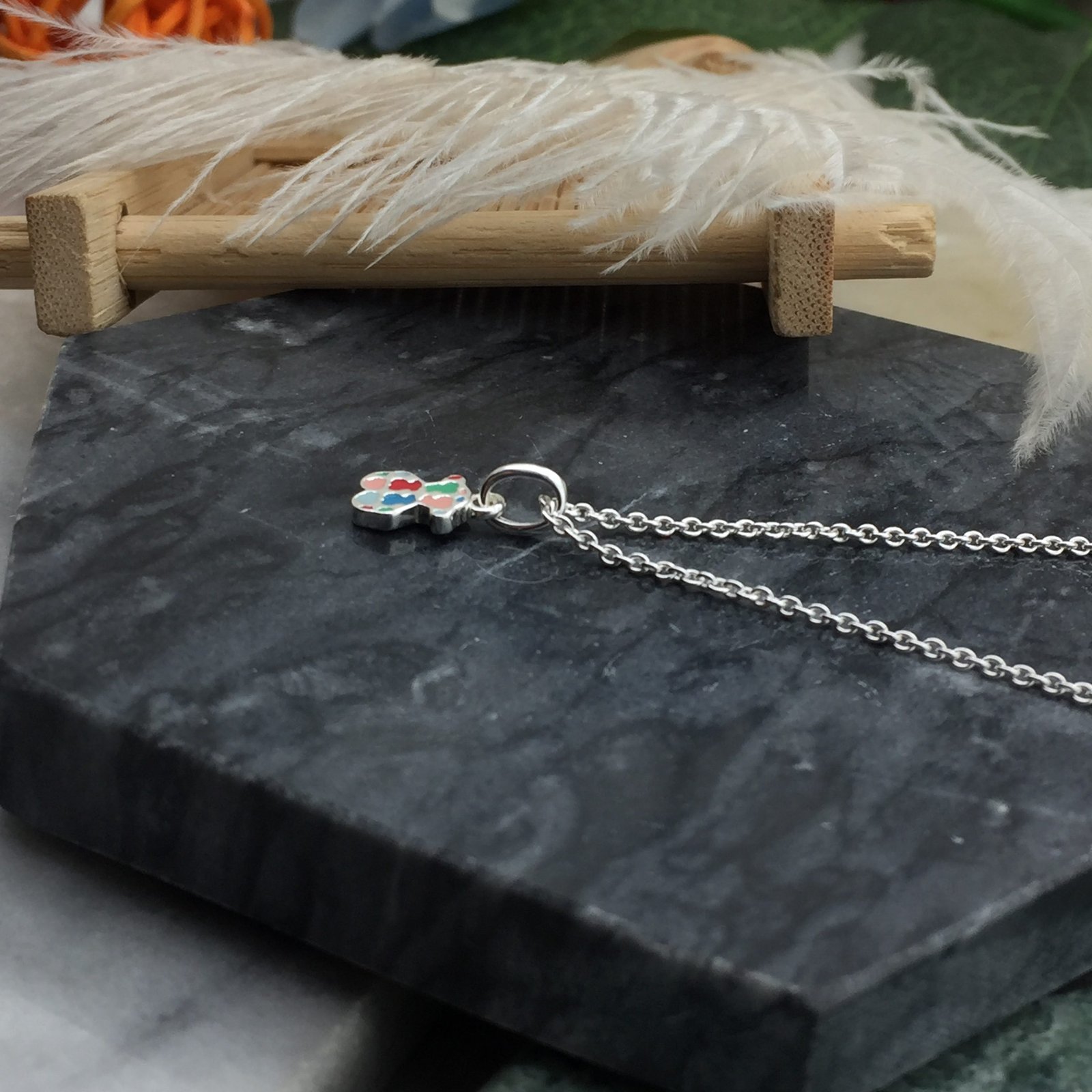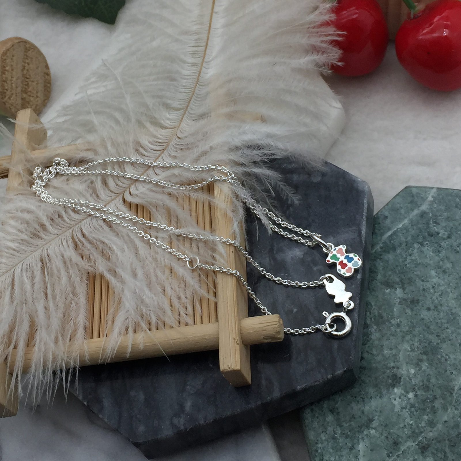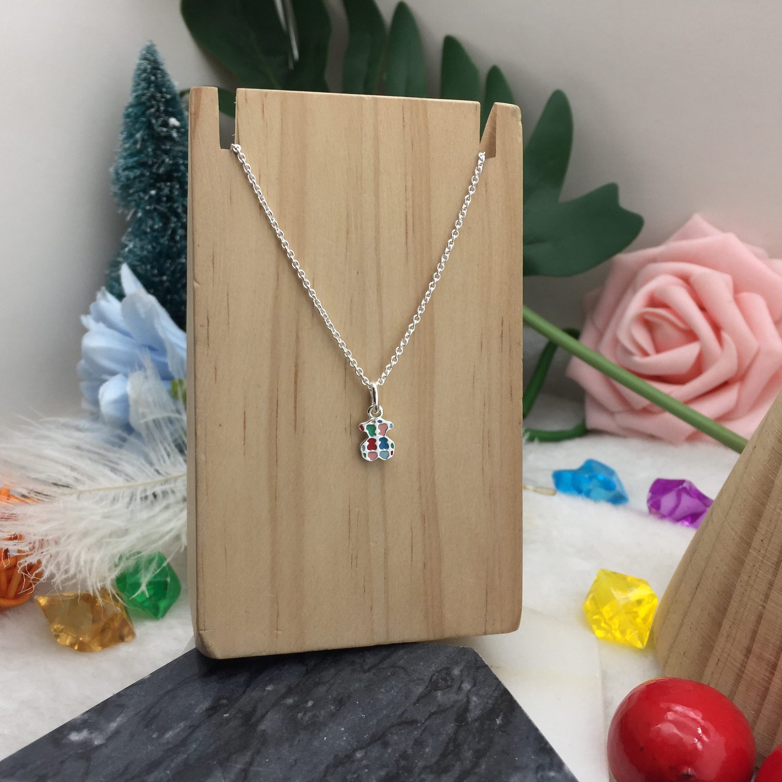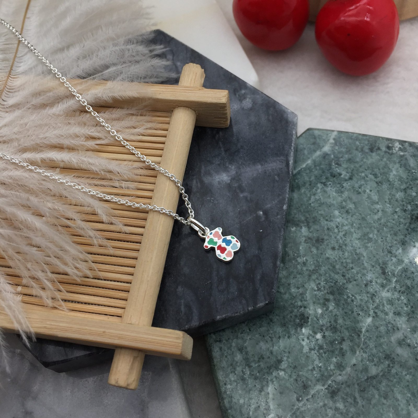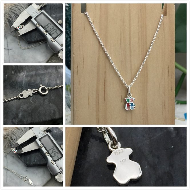 TOUS Tartan Necklace in sterling silver with colored enamel bear print. Size: 0.8 cm. Length: 45 cm.
