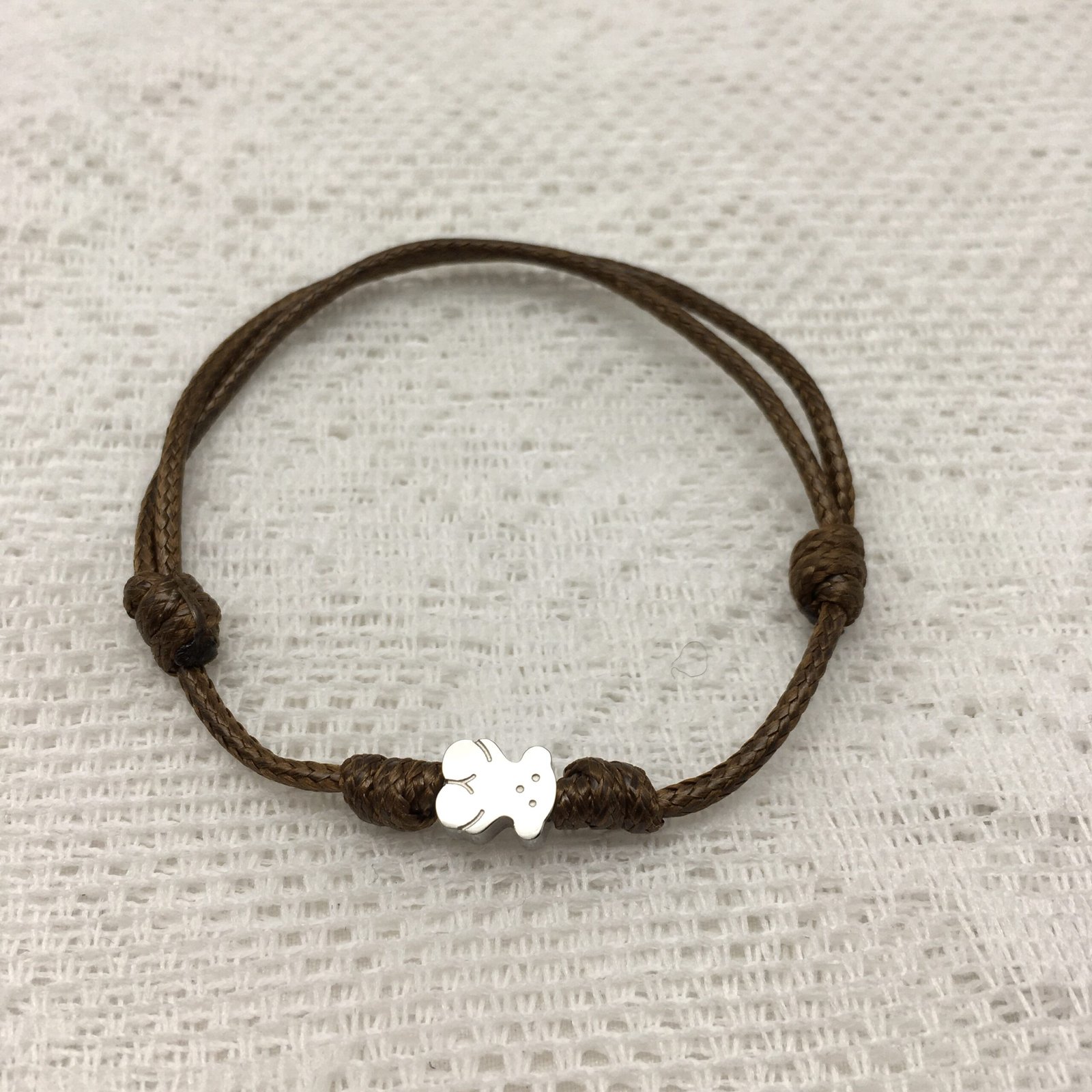 Not all cord bracelets are equal. This one, in brown with a steel bear, is a young and informal piece, but full of personality. Explore your ethnic-chic side.