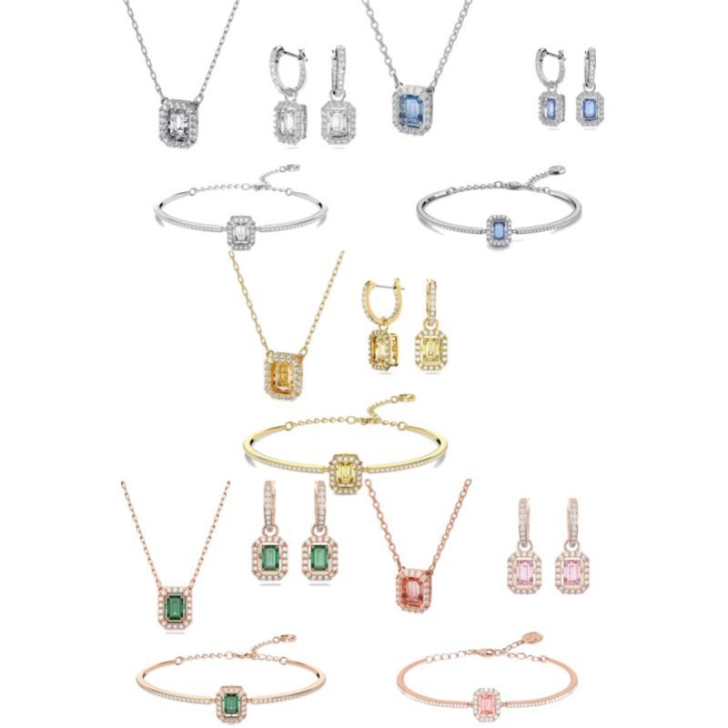 The Swarovski Millenia Collection Colored Gemstone Square Diamond Jewelry Set blends the brand’s signature precision cutting with colored crystals and sparkling square diamonds, creating a luxurious jewelry line that balances vintage charm and modern sophistication.
