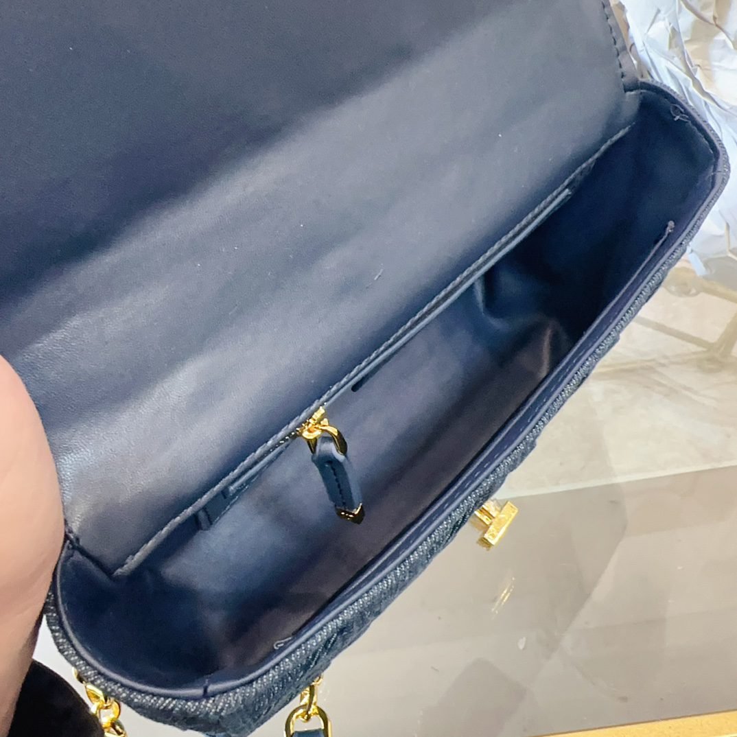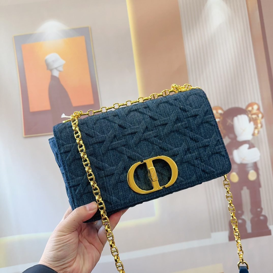 The handbag is carefully crafted from cowhide leather, with signature wicker stitch detailing for stitching. The material is soft, and the flip cover is decorated with a retro gold finish metal “CD” buckle. It is a small style, paired with a detachable iconic “CD” chain shoulder strap, which can also be replaced with embroidered wide shoulder straps, making it more elegant and fashionable. Whether it’s daily styling or dinner parties, it’s easy to handle. Flip open and close with knob style “CD” buckle. The back of the buckle features a “30 Montaigne” embossed logo. The detachable and adjustable “CD” chain link shoulder strap is paired with a military style “Christia n Dior” buckle. The internal zipper pocket and patch pocket on the back can be carried by hand, shoulder or crossbody