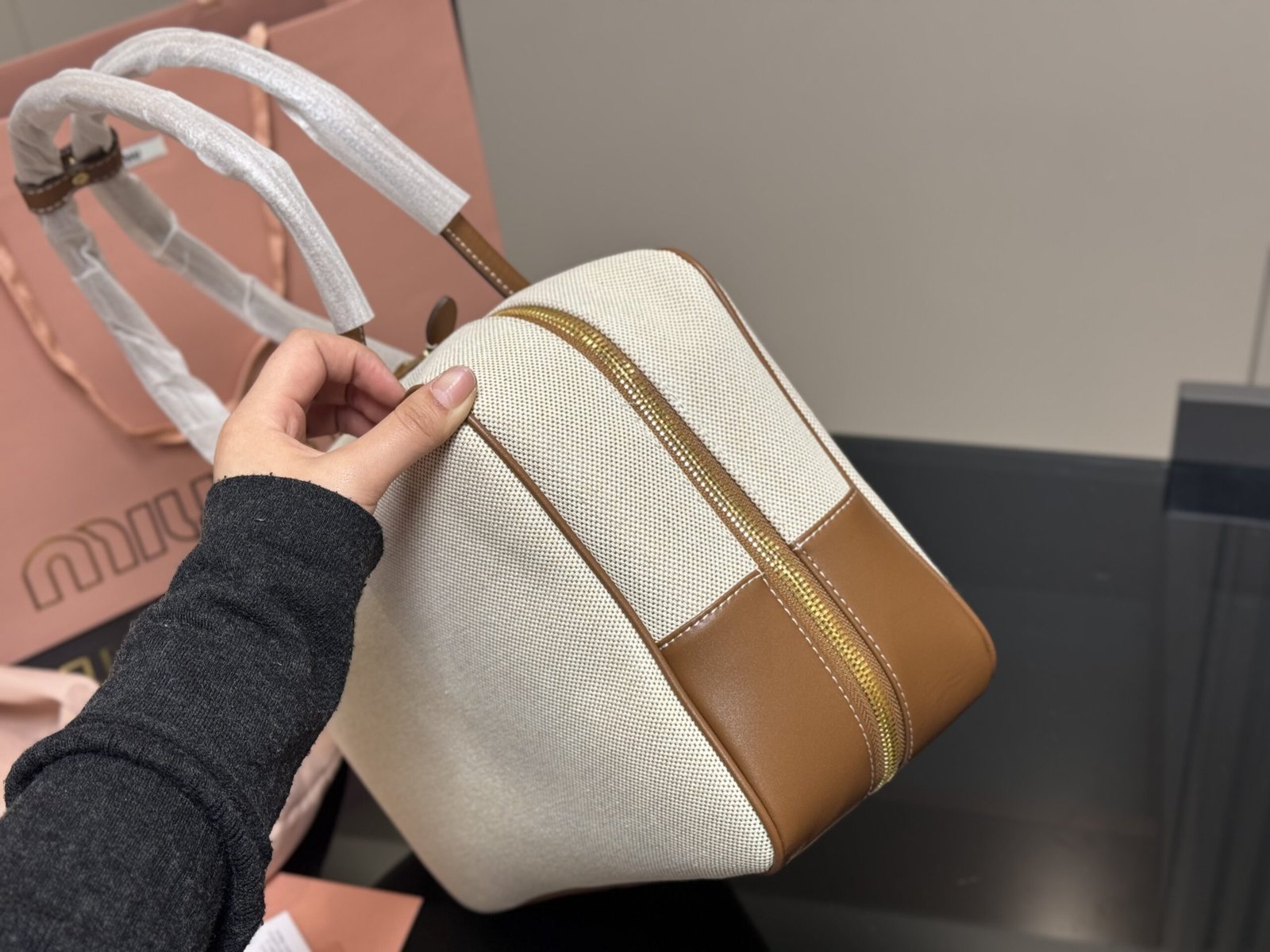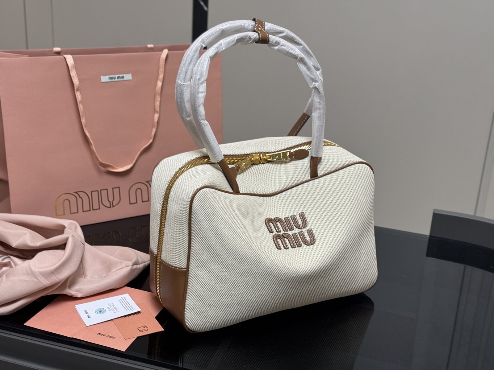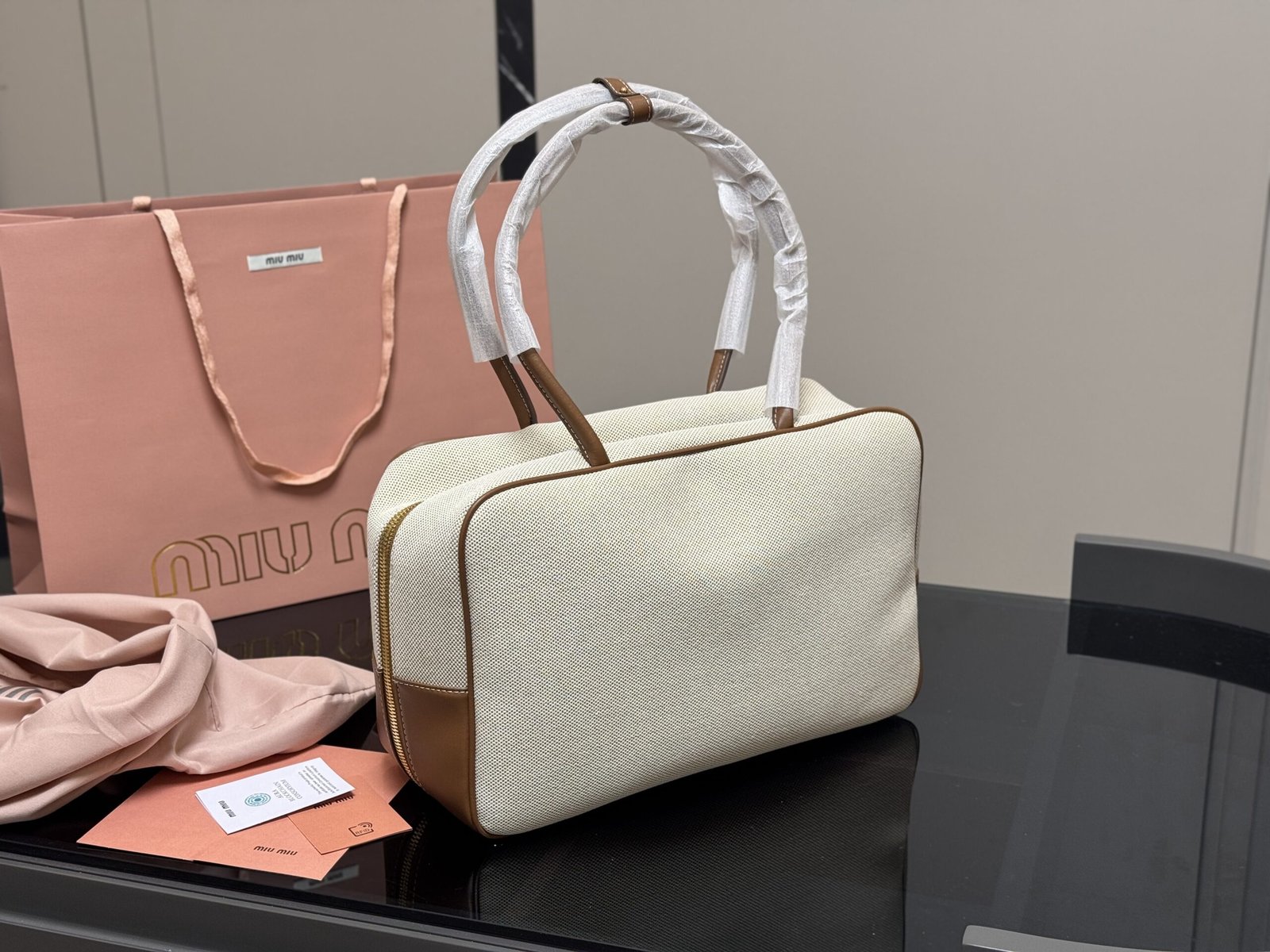 Home BAGS MIUMIU-BAG The new bowling ball-shaped canvas briefcase can be carried by hand or across the body