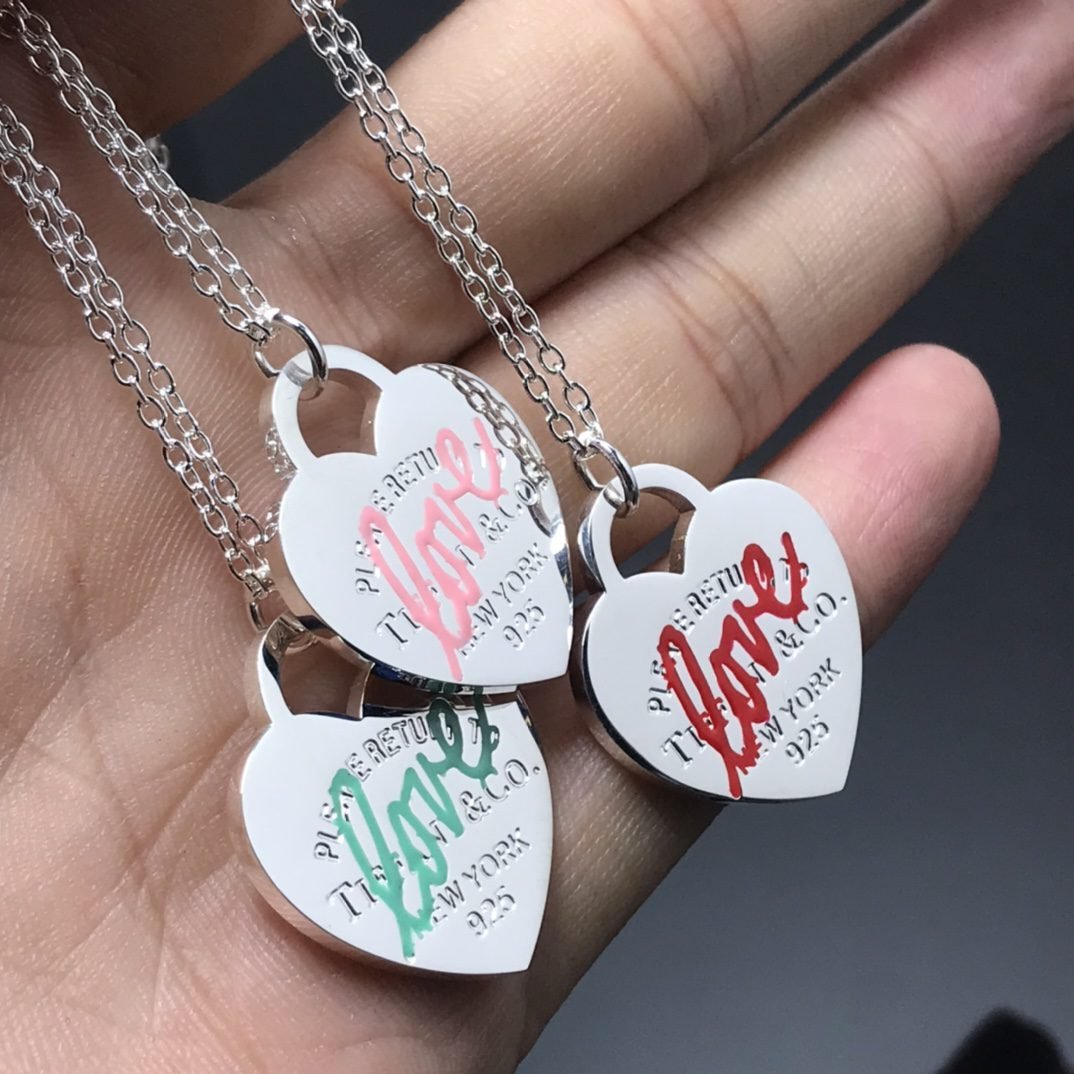 Home JEWELRY TIFFANY TIFFANY NECKLACE Tiffany Love Collection Color-Printed Heart Lock Pendant Necklace – 925 Silver Multi-Color Collarbone Chain, Tiffany Romantic Logo Necklace