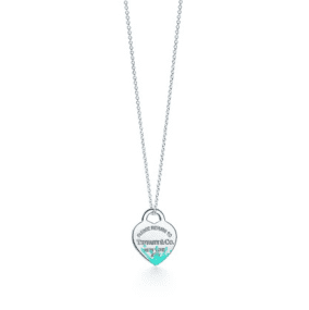 Tiffany silver necklace paired with pink heart-shaped pendant,