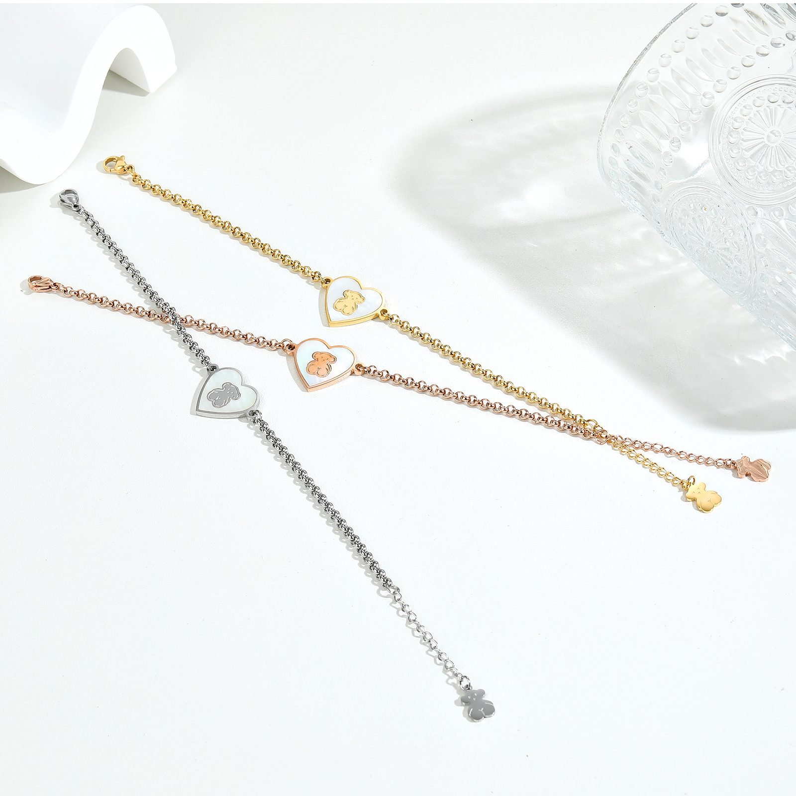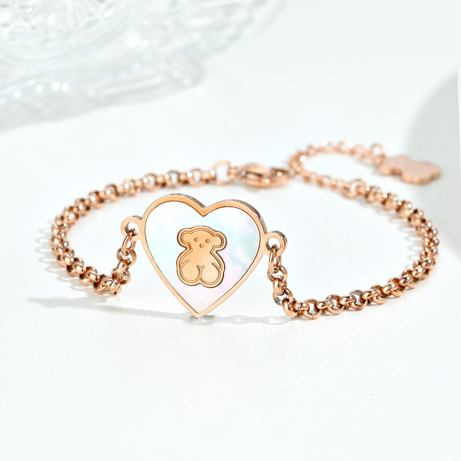 In the perfect encounter of simplicity and cuteness, TOUS has carefully crafted this 925 silver minimalist love bear bracelet, cleverly blending warmth and fashion, adding an irresistible sweet scent to your daily wear. Material selection: Made of high-quality 925 sterling silver material, finely polished, the surface of the bracelet emits a soft and delicate luster, not only showcasing the wearer’s taste and style, but also ensuring the durability and non allergenicity of the product, suitable for long-term wear on various skin types. Design highlight: The central focus of the bracelet is a cute and adorable heart-shaped teddy bear shaped pendant. The teddy bear outlines a round and cute contour with smooth lines, and its eyes sparkle with gentle light, as if conveying endless warmth and love. The body of the little bear cleverly blends into the shape of a heart, symbolizing the embrace and protection of love, simple yet romantic. Details: The chain part adopts a delicate chain design, which is lightweight and fits the curve of the wrist, making it comfortable and burden free to wear. The buckle is also made of high-quality 925 silver material and has undergone special treatment to ensure smooth and reliable opening and closing, making every wear a pleasant experience. Applicable occasions: Whether it’s daily travel, dating parties, or as a gift for holidays and birthdays to family and friends, the TOUS 925 silver minimalist love bear bracelet can perfectly handle it. It is not only a fashion accessory, but also a thoughtful choice to convey love and blessings. Brand Charm: As a jewelry brand with a long history, TOUS has won the love of global consumers with its unique design concept and exquisite craftsmanship. This simple heart-shaped teddy bear bracelet is a epitome of the brand spirit, showcasing TOUS’s infinite pursuit of beauty, innocence, and love. Choose the TOUS 925 Silver Simple Love Bear Bracelet to make this simple yet sophisticated fashion item an indispensable sweet companion in your daily life.