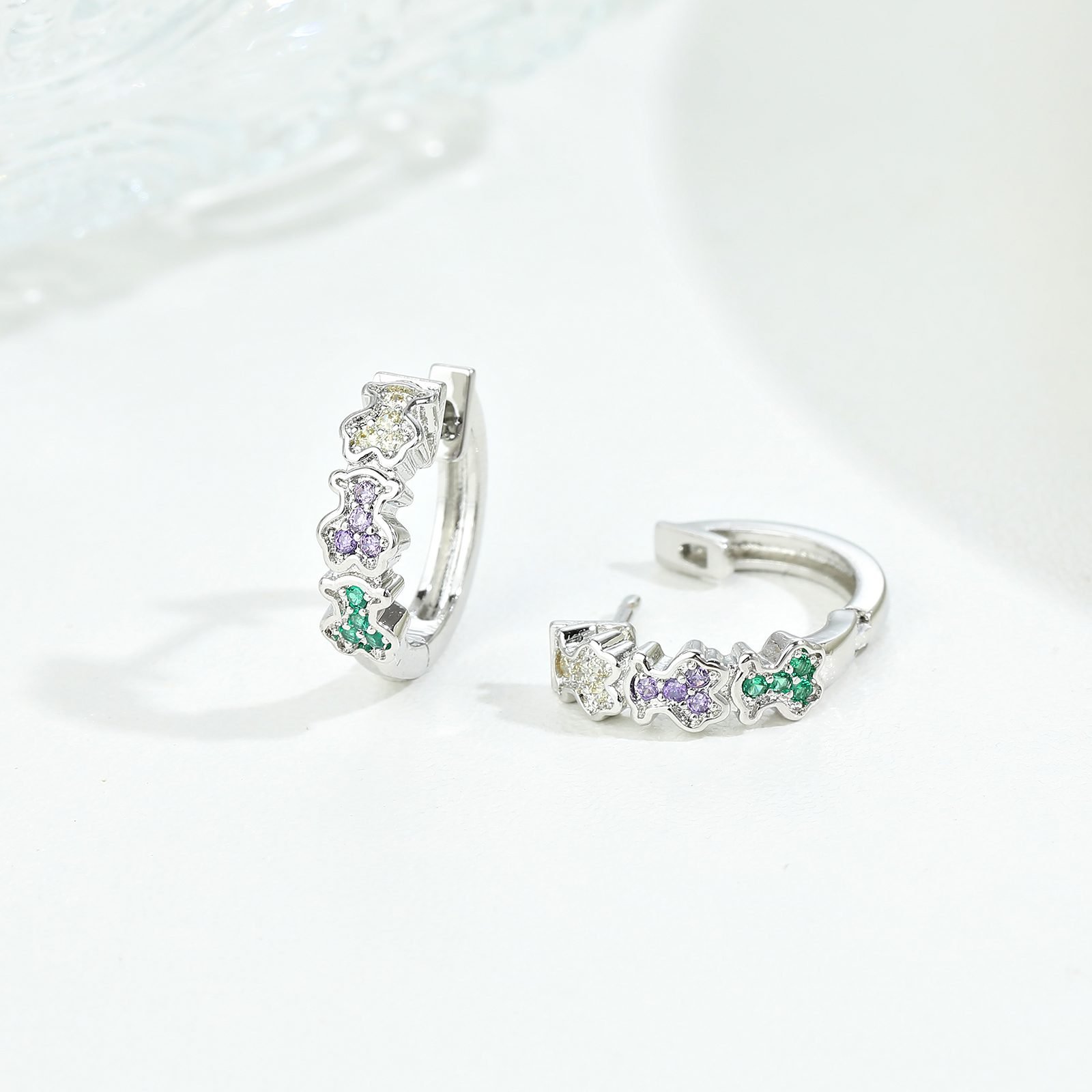 TOUS, This brand, full of Spanish charm and creativity, has ingeniously launched this 925 silver three bear colored zircon inlaid ring earring, cleverly combining the classic bear image with colorful zircon, adding an irresistible fashion charm to your ears. 【 Material Selection 】 Selected 925 sterling silver material, with its pure luster and delicate touch, lays a high-quality foundation for this earring. Pure silver not only exhibits an elegant and noble temperament, but also has excellent anti allergy performance, ensuring comfortable and safe wearing. And the colored zircons embedded on it are carefully selected and cut, each shining with a unique and charming brilliance, like a rainbow of brilliant colors. 【 Design Highlights 】 The design inspiration comes from TOUS’ yearning and pursuit of a better life. The earrings adopt a circular shape, symbolizing infinite circulation and eternal beauty. Above the circular ring, three adorable little bears gather in different postures, either playing or cuddling, full of childlike innocence and warmth. The image of the little bear is vivid and lifelike, and the details fully demonstrate the brand’s ultimate pursuit of craftsmanship. The colorful zircon stones surrounding the little bear add infinite vitality and color to the entire design. These zircons are colorful and complement each other, as if telling stories about love and dreams. This TOUS 925 silver three bear colored zircon inlaid circular earrings is not only an eye-catching fashion item, but also a messenger of happiness, friendship, and dreams. Three little bears symbolize pure friendship and the warmth of family, while colored zircon symbolizes colorful life and a bright future. Whether as a reward for oneself or as a way to express friendship with family and friends, this earring can make the recipient feel full of love and blessings. This earring, with its unique design style and rich color matching, easily adapts to various fashion occasions and dressing styles. Whether paired with simple T-shirts and jeans, or elegant dresses and high heels, it can add a touch of highlight to your overall look, showcasing the wearer’s unique personality and taste. Whether for daily travel or attending party events, this earring can make you the center of attention in the crowd. Choose TOUS 925 Silver Three Bear Colored Zircon Inlaid Circular Earrings, let this creativity and color from Spain accompany you through every exciting moment, lighting up your fashionable life.