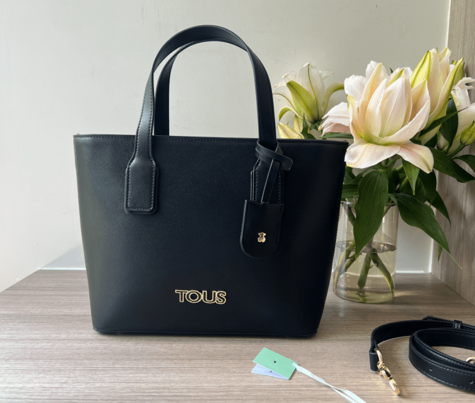 TOUS Amaya Medium Shopping Bag. It also has a three-dimensional logo decoration. Zipper opening and closing. Fixed handle and adjustable and detachable crossbody shoulder strap. Measurements :36*27*23.5*11cm