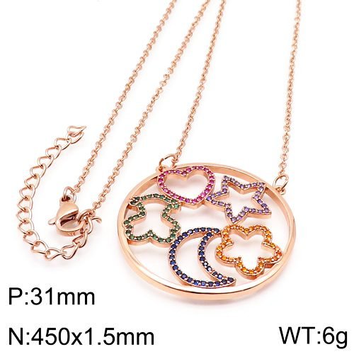 This Spanish bear gemstone necklace pendant is crafted with high-quality stainless steel material, ensuring not only its durability but also giving it a lightweight and elegant texture. The corrosion resistance and wear resistance of stainless steel allow this pendant to accompany you through every important moment, showcasing long-lasting brilliance. The pendant cleverly incorporates five unique Spanish bear patterns, each carefully designed and lifelike, showcasing the adorable and brave resilience of the Spanish bear. These patterns not only add an artistic touch to the pendant, but also allow every wearer to feel the unique charm of Spanish culture. The colored gemstones in the pendant have been carefully selected and polished, emitting a brilliant and dazzling brilliance. They complement each other with stainless steel material, forming a low-key and luxurious style, showcasing the splendor of jewelry while remaining restrained and elegant. These gemstones are like scattered stars, adding endless charm to the pendant. The length of this necklace is 31cm, and the pendant is 460×1.5mm.