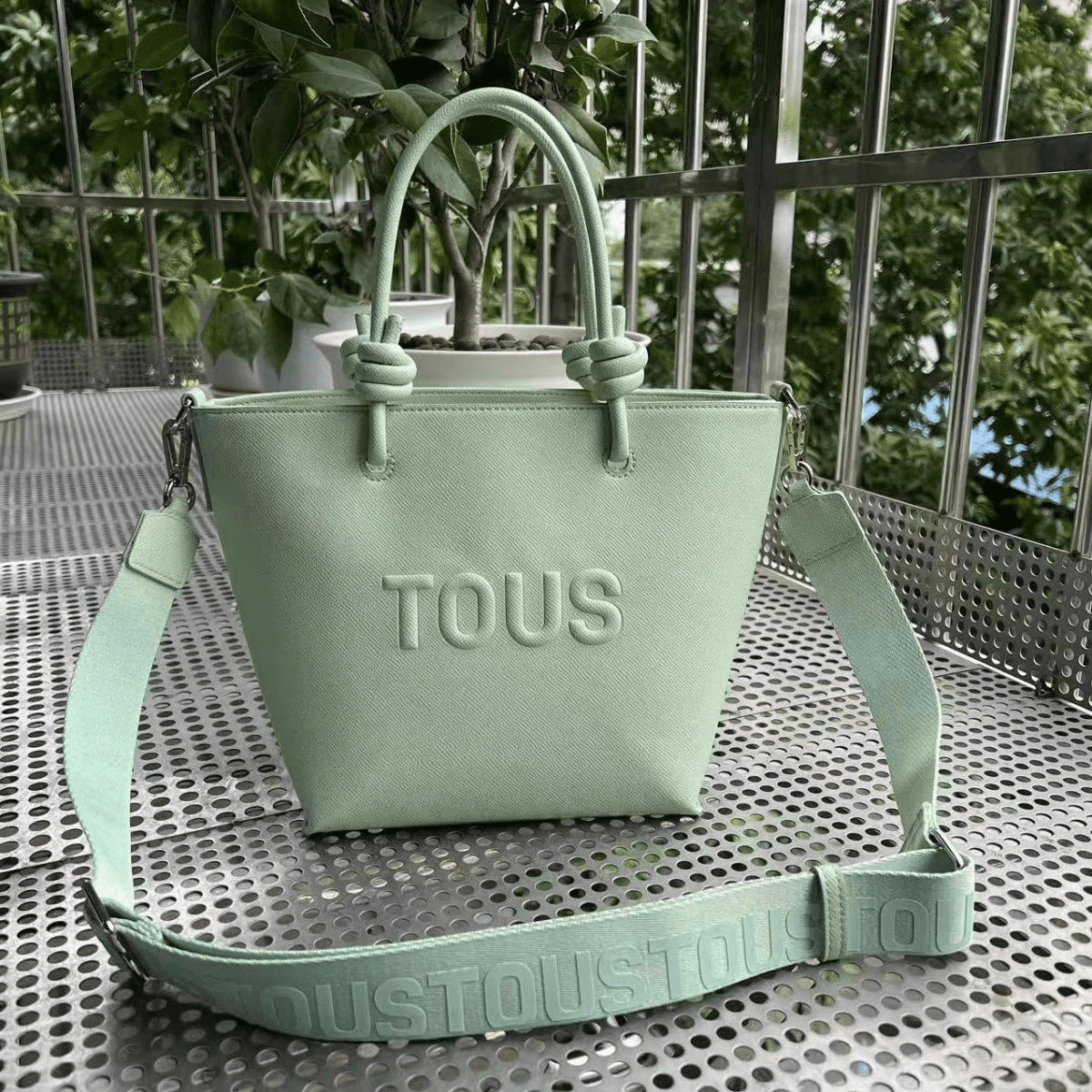 TOUS La Rue green series synthetic leather small tote bag. Zipper opening and closing. It has an inner open pocket. Fixed handle and adjustable detachable crossbody shoulder strap. Measurements: 31 * 22.5 * 12 cm