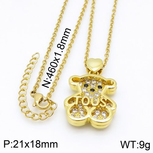 The pendant design is themed around a teddy bear, with a lifelike image full of cuteness and fashion sense. The letter element may be part of the pendant design, and consumers can choose their preferred letters for customization to showcase individuality and uniqueness. The gemstones are embedded in specific parts or letters of the teddy bear, making the pendant shine brightly in the light and full of luxury. Made of high-quality metal and gemstone materials, this pendant ensures its durability and beauty. This pendant is perfect for daily wear, showcasing different styles whether paired with casual or formal attire. Its exquisite size and fashionable feel make it an excellent choice for daily wear. The length of this necklace is 46cm, and the pendant is 21x18mm.