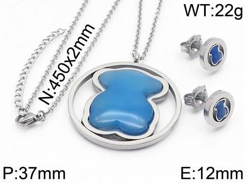 Applicable occasions: This TOUS stainless steel circular ring big blue zircon bear necklace and compact blue zircon earring set can make you the center of attention for daily wear, workplace work, formal occasions such as dinners and parties. It not only showcases your unique taste and personal charm, but also adds a touch of refinement and elegance to your overall look.