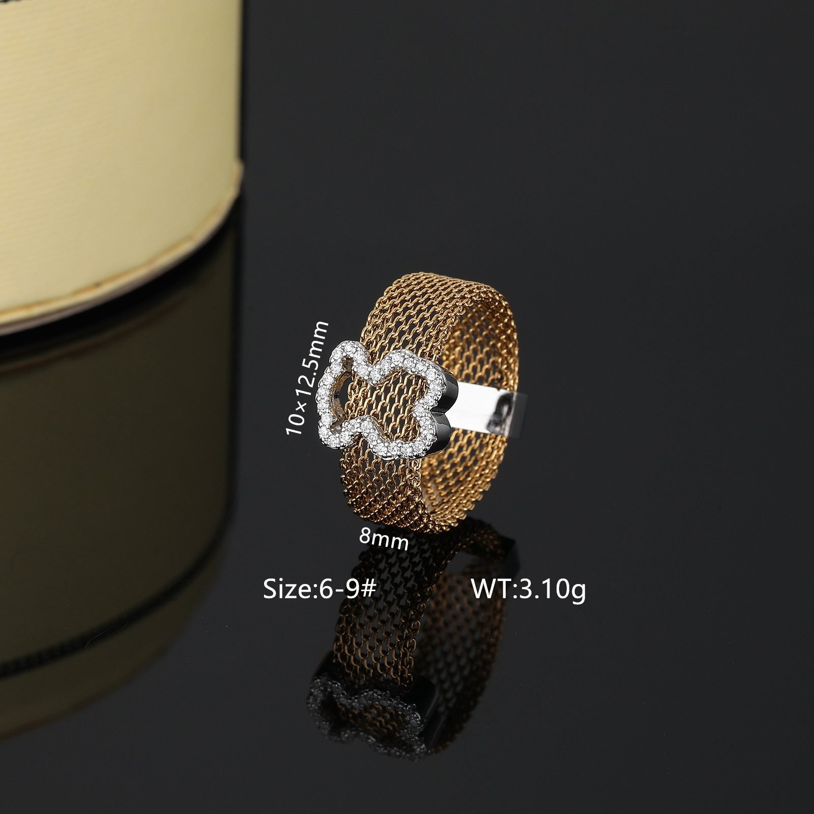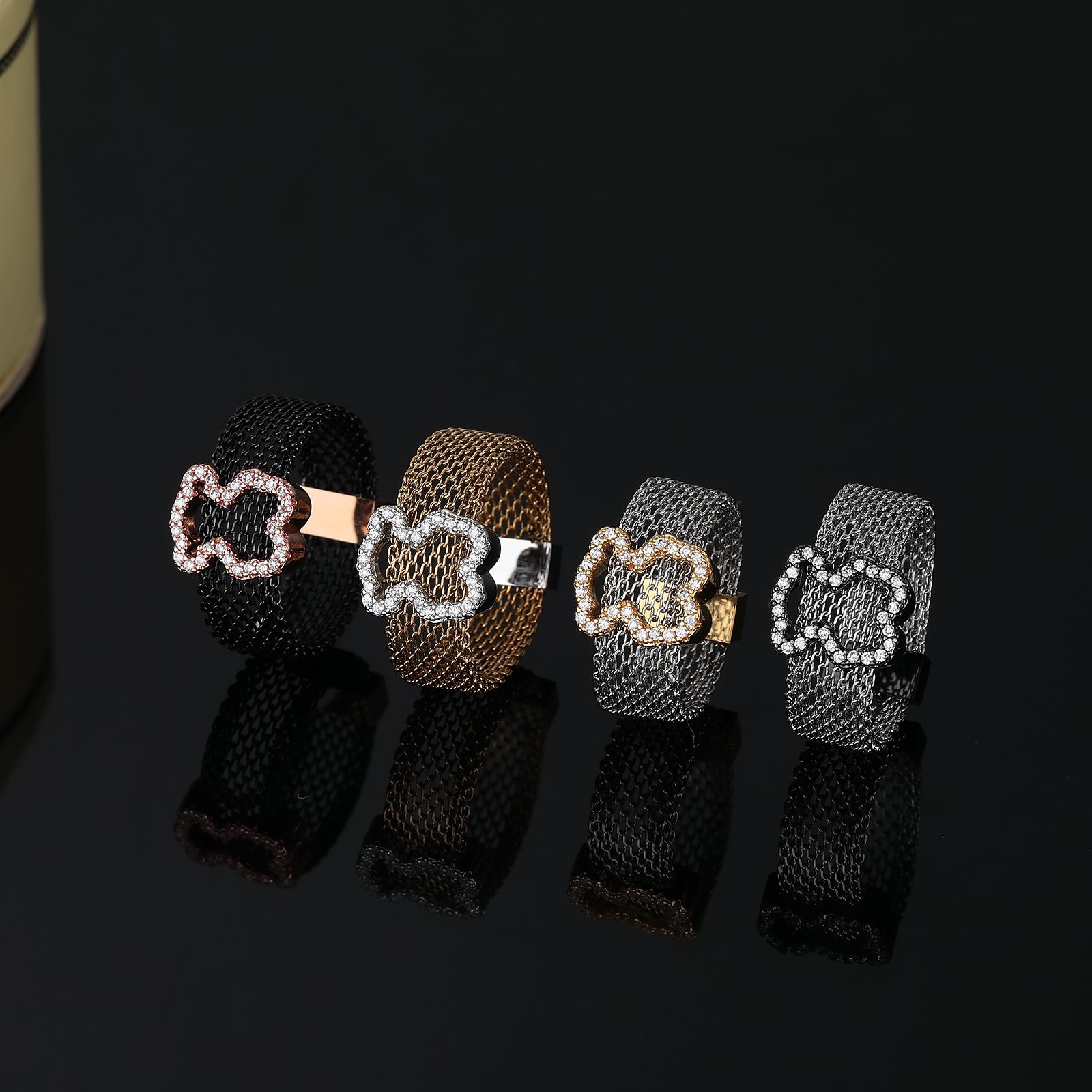TOUS stainless steel frame teddy bear colorful zircon inlaid mesh ring is a jewelry accessory that combines fashion, delicacy, and personalization. It is framed with high-quality stainless steel and incorporates colorful zircon inlay and bear elements, bringing a visual feast to your fingertips. Choose it so that every move and gesture you make radiates a charming radiance and confidence.
