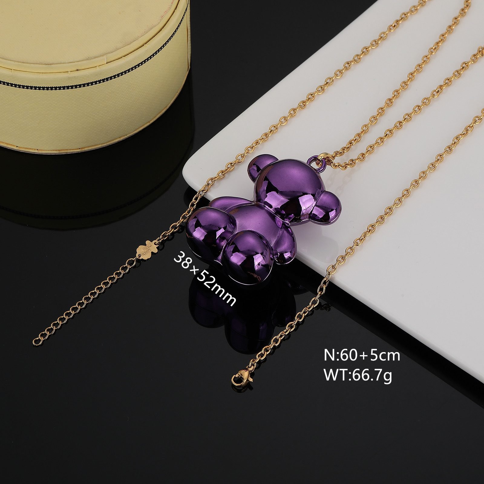 This TOUS accessory is mainly made of high-quality stainless steel, ensuring its durability and lightweight wearing experience. After a special surface treatment process, the stainless steel surface presents a charming bright purple tone, which is both gorgeous and elegant, as if emitting a romantic purple atmosphere. This bright purple tone is both fashionable and eye-catching, which can easily attract people’s attention. As the mascot of the TOUS brand, the image of the Spanish bear is vividly displayed in this accessory. The round and cute shape and smooth lines highlight the liveliness and agility of the Spanish bear. The combination of bright purple stainless steel material and the image of a Spanish bear makes the entire accessory more dazzling and fashionable. On the chest or feet of the Spanish bear, there is a brilliant gemstone set. This gemstone has been carefully selected and polished, emitting a charming light that contrasts sharply with the bright purple background, highlighting the nobility and delicacy of the jewelry. The embellishment of gemstones not only adds a sense of layering to the jewelry, but also makes the entire jewelry more dazzling and eye-catching. TOUS stainless steel material bright purple gemstone Spanish bear jewelry is lightweight and exquisite, whether worn on the neck or wrist, it can add a unique charm to your appearance. The bright purple color tone is both mysterious and noble, bringing a unique confidence and elegance to the wearer. This accessory is suitable for pairing with various styles of clothing, whether it is casual or formal, it can showcase the wearer’s unique taste and fashion attitude. The length of this necklace is 60+5cm, and the pendant is 38x52mm