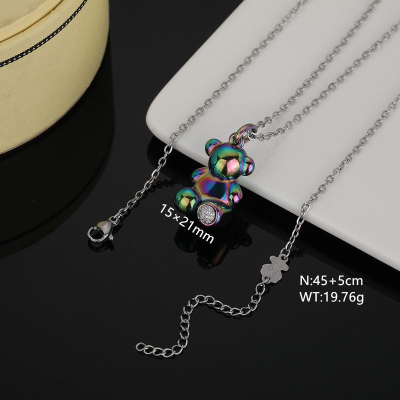 TOUS stainless steel colorful gemstone Spanish bear jewelry perfectly blends the brand’s classic elements with modern aesthetics. Using high-quality stainless steel as the main material and undergoing special processing, it presents a dazzling visual effect. This accessory is inspired by the Spanish bear and showcases the brand’s unique cuteness and agility. The Spanish bear, as the mascot of the TOUS brand, has become a symbol of the brand with its round and cute image. In this accessory, the Spanish bear is cleverly depicted with smooth lines and vivid forms. And the most eye-catching thing is its dazzling appearance. Through advanced surface treatment technology, stainless steel presents a rich and colorful color, like a rainbow. In front of the feet of the Spanish bear, there is a brilliant gemstone set as an embellishment, adding a touch of brightness to the entire jewelry. This gemstone has been carefully selected and polished, shining with charming light, forming a sharp contrast with the dazzling Spanish bear, making it more noble and exquisite. TOUS stainless steel colorful gemstone Spanish bear jewelry uses high-quality stainless steel as the main material, ensuring the durability and non deformability of the jewelry. The dazzling surface treatment process adopts advanced nanotechnology, which presents a unique color effect to stainless steel through multi-layer coating and reflection, while maintaining long-term brightness. The inlay process of gemstones is also exquisite, using stable claw inlay technology to ensure that the gemstones are not easily detached or damaged. The entire jewelry production process undergoes strict quality testing to ensure that each product meets the brand’s high standards. This TOUS stainless steel colorful gemstone Spanish bear accessory is lightweight and exquisite, worn around the neck or wrist, showcasing the wearer’s fashion taste and conveying a unique emotion. The dazzling appearance stands out even more in the sunlight, making you the center of attention. Whether it’s for daily wear or attending important occasions, this TOUS stainless steel colorful gemstone Spanish bear accessory can be your best partner. Its fashionable design and unique charm allow you to exude confidence and charm at any time. The length of this necklace is 45+5cm, and the pendant is 15x21mm