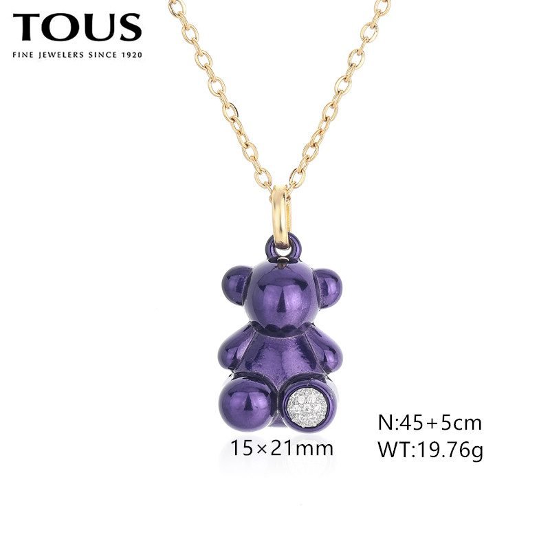 This accessory is made of high-quality stainless steel as the main material, ensuring its durability and superior texture. After special processing, the stainless steel surface presents a unique dark purple color tone, adding a mysterious and elegant atmosphere to the jewelry. This dark purple color tone appears particularly profound and intoxicating in the sunlight. The Spanish bear, as the mascot of the TOUS brand, has become a symbol of the brand with its round and cute image. In this accessory, the Spanish bear is cleverly depicted with smooth lines and vivid forms, as if ready to share happy moments with the wearer at any time. Its round and cute image complements the dark purple tone, making the entire accessory even more captivating. In front of the feet of the Spanish bear, there is a brilliant gemstone set, adding a touch of brightness to the entire jewelry. This gemstone has been carefully selected and polished, shining with charming light, forming a sharp contrast with the dark purple Spanish bear, showcasing nobility and delicacy. TOUS stainless steel dark purple gemstone Spanish bear jewelry is lightweight and exquisite, showcasing the wearer’s fashion taste and unique personality whether worn on the neck or wrist. The dark purple appearance emits a charming luster in the sunlight, making you the center of attention. Whether it’s for daily wear or attending important occasions, this accessory can become your best partner, showcasing your unique charm. The length of this necklace is 45+5cm, and the pendant is 15x21mm