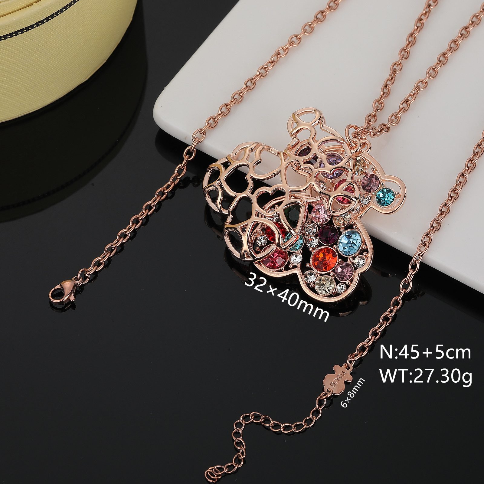 This TOUS stainless steel Spanish bear double frame heart-shaped frame colored zircon inlaid necklace pendant has become a darling of the fashion industry with its unique design style and colorful visual effects. Whether paired with simple casual attire or elegant evening gowns, they can showcase the wearer’s unique fashion taste and romantic temperament. It is a fashionable item for daily wear and also the finishing touch for attending special occasions.