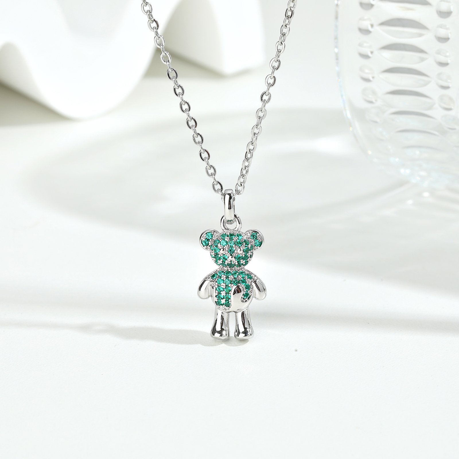 TOUS stainless steel material Spanish bear green zircon inlaid necklace pendant