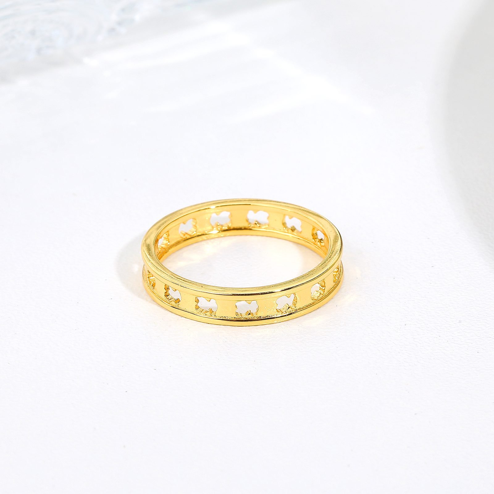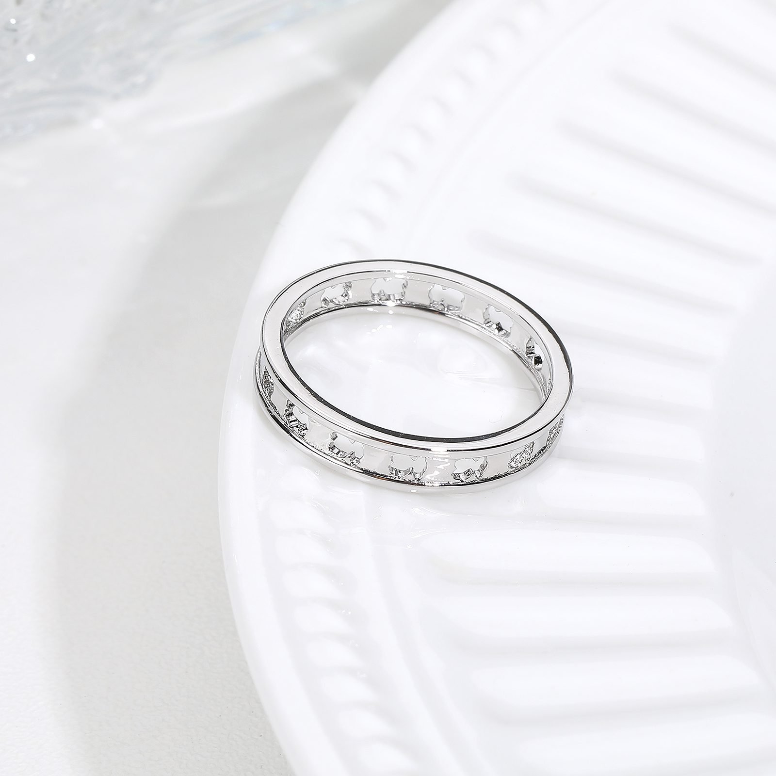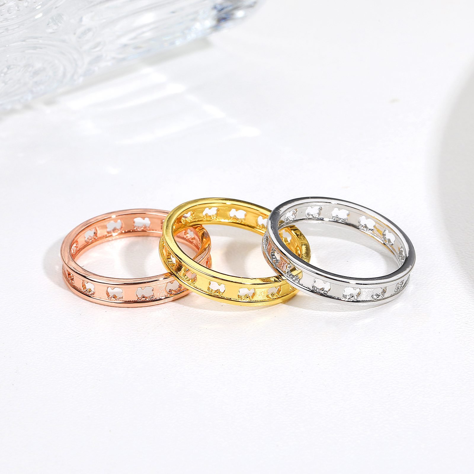 Design highlight: The design highlight of the ring lies in its unique bear hollow pattern. This pattern is inspired by a teddy bear and cleverly integrated into the ring through hollowing out, creating a three-dimensional and layered visual effect. The shape of the little bear is cute and vivid, as if jumping happily on the ring, bringing endless joy and vitality to the wearer. The hollow design not only makes the ring lighter and more breathable, but also allows light to pass through the ring, creating a charming light and shadow effect, adding a mysterious and romantic atmosphere.