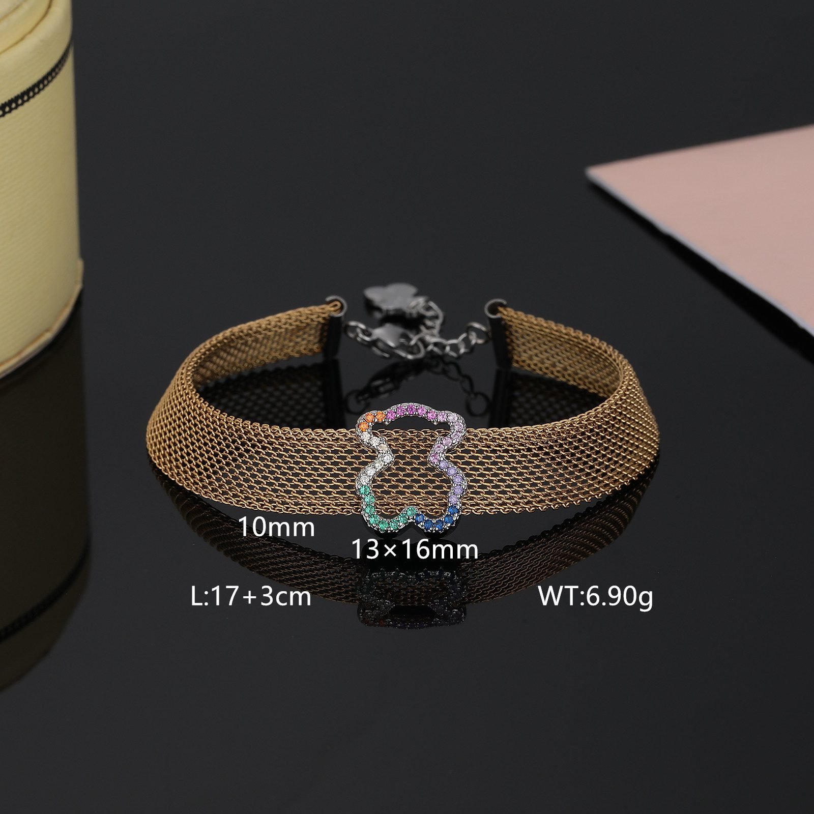 Cute and playful little bear design: surrounded by dazzling zircon stones, a cute and adorable little bear appears leisurely. It is not only the finishing touch of the bracelet, but also the iconic cute element of the TOUS brand. The delicate lines and vivid expressions of the little bear showcase endless childlike fun and warmth, making people unable to resist wanting to get close.