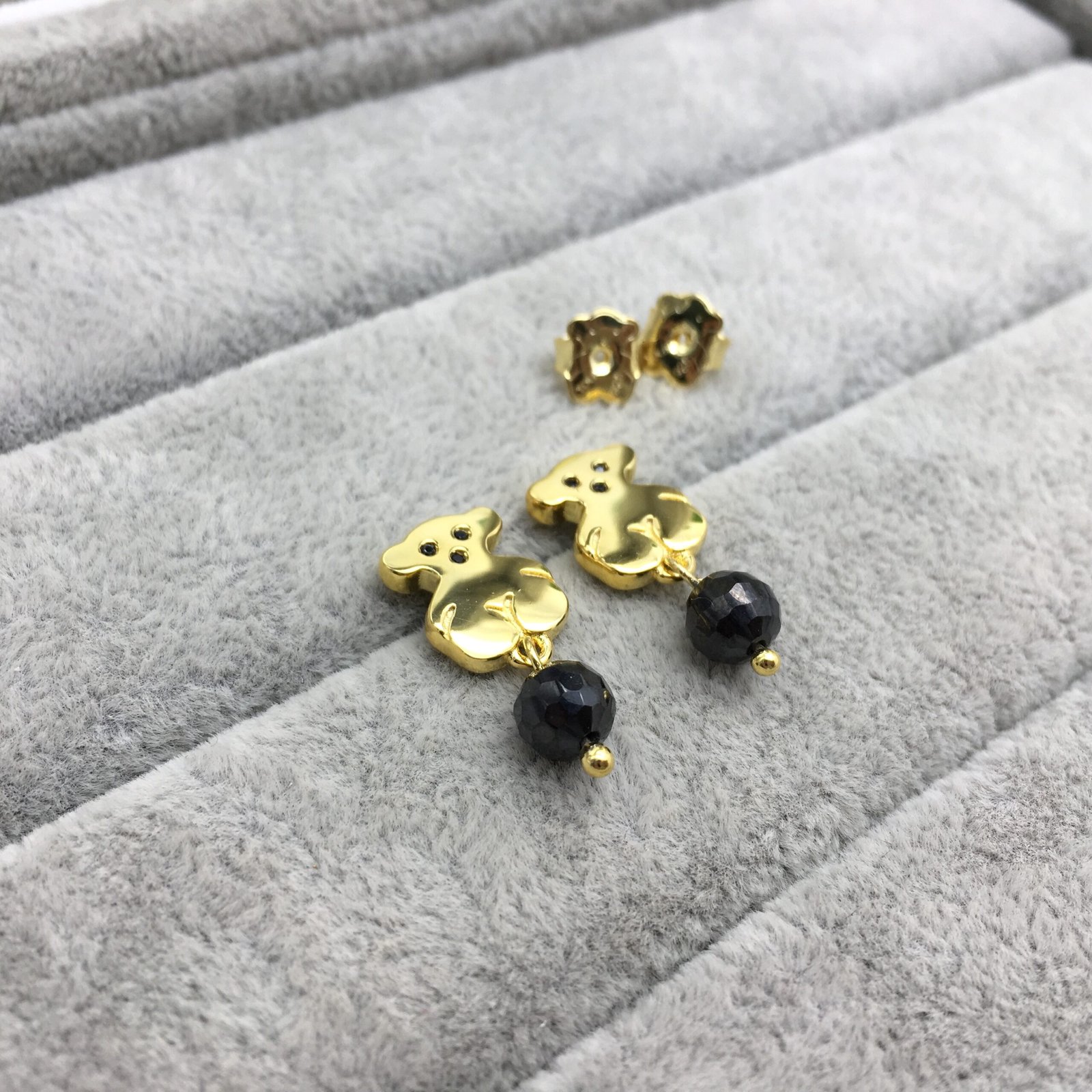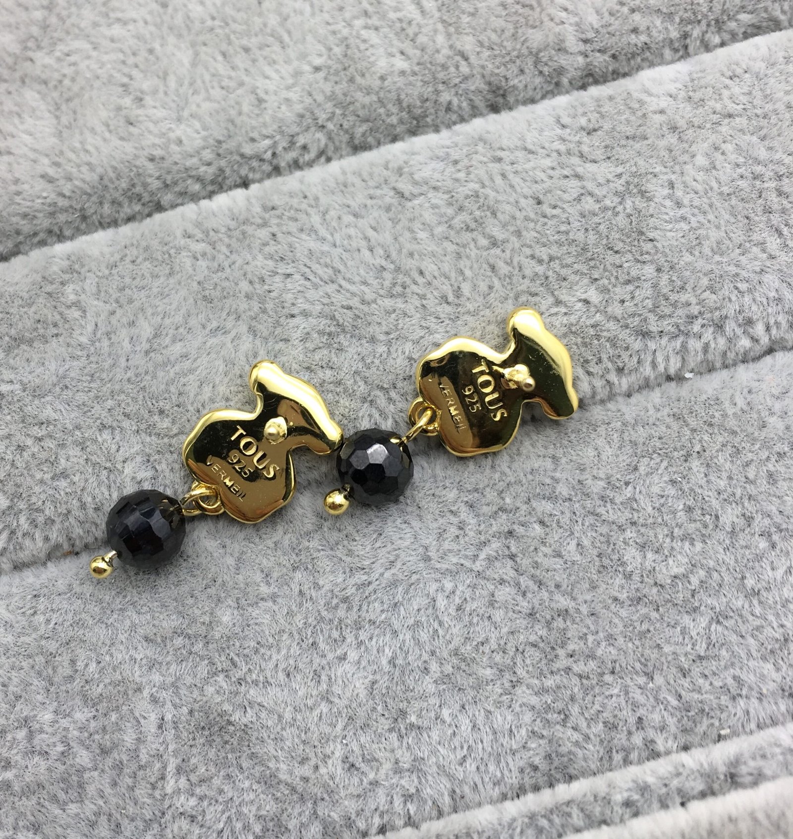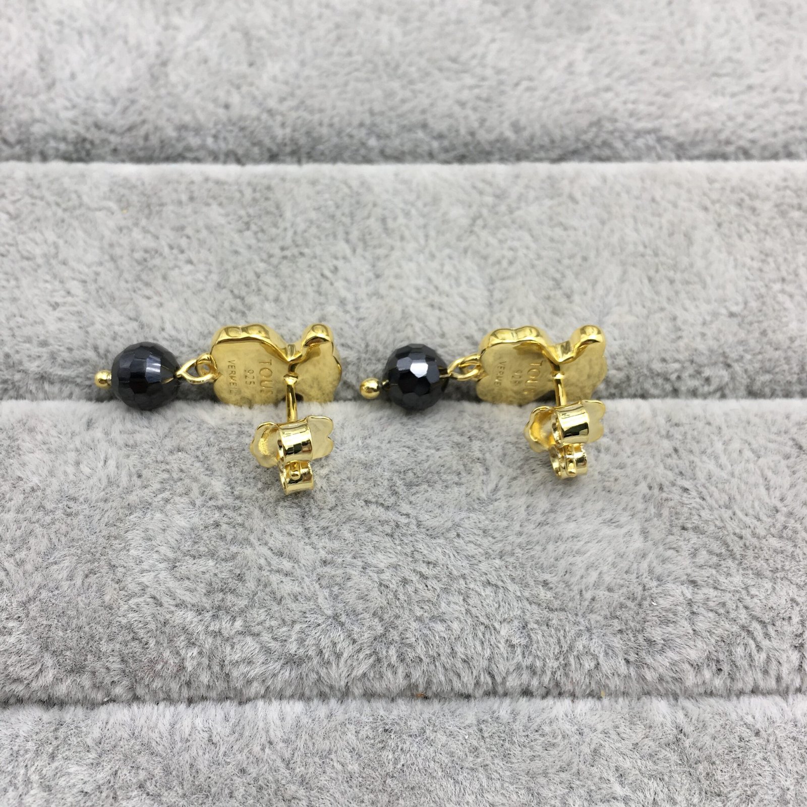 TOUS Sweet Dolls earrings with gold plating, spinel, onyx. Gold plating: sterling silver, covered with a thin layer of 18 kt gold. Insert: 1.15 cm. Stud clasp.