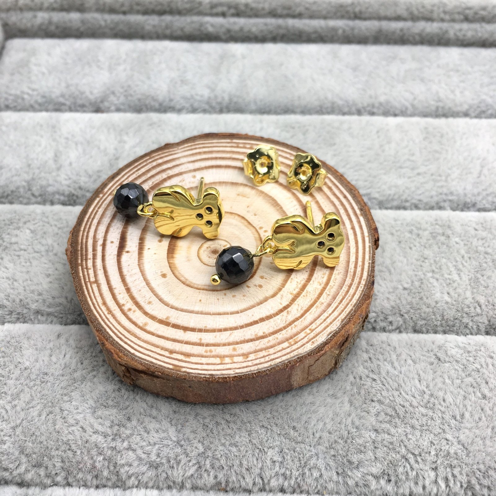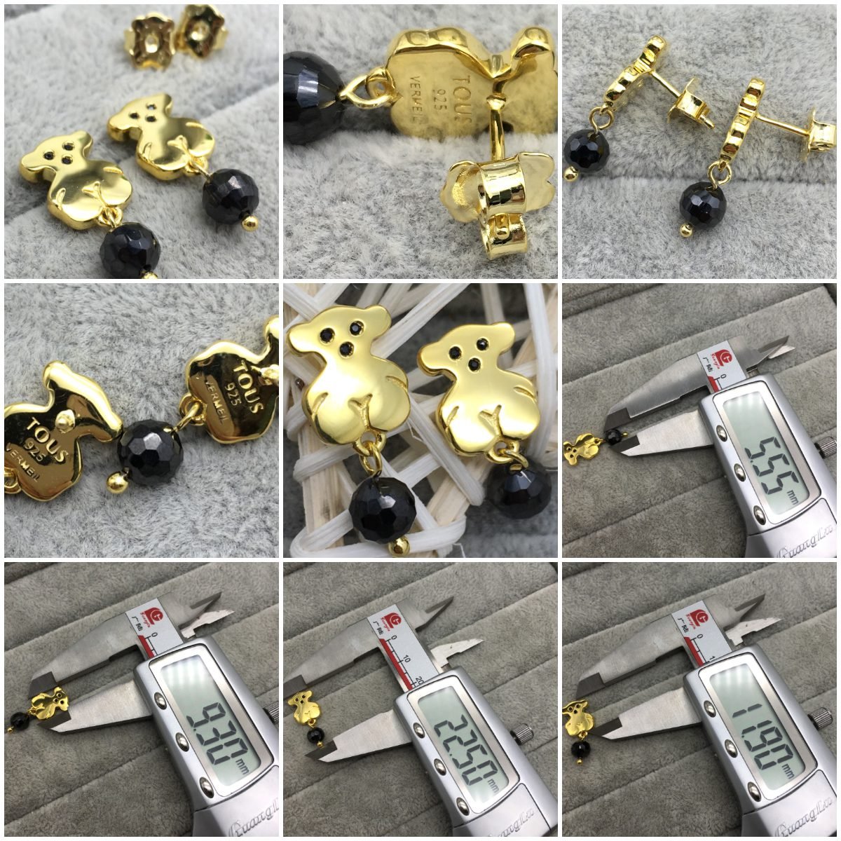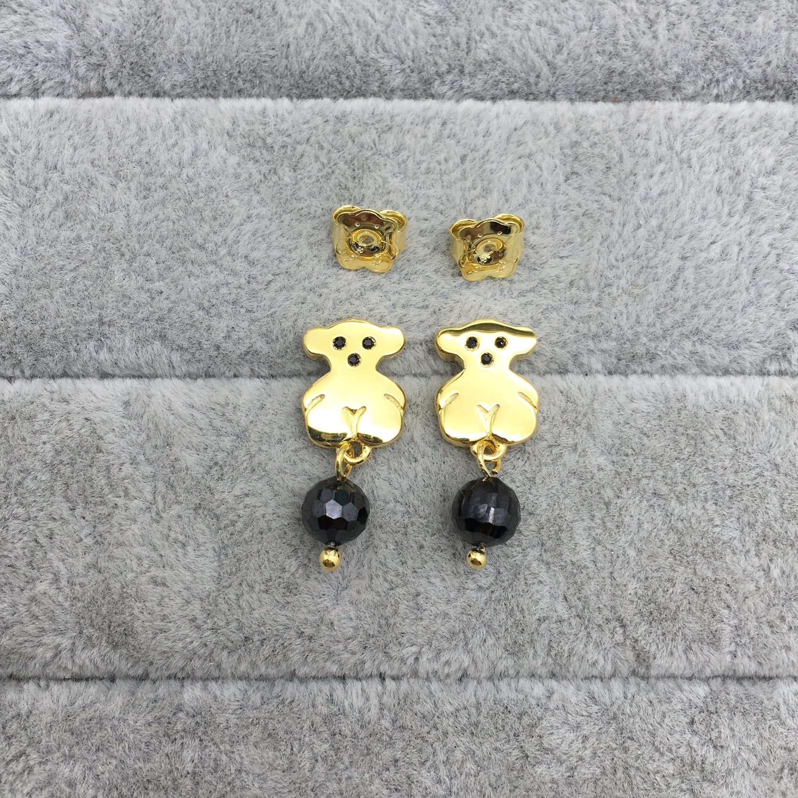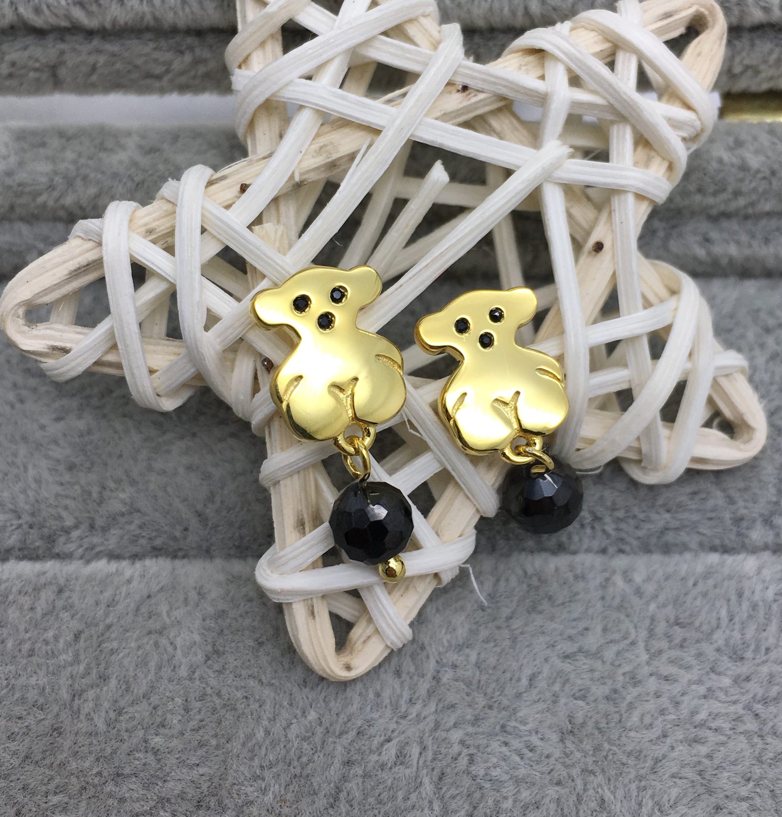 TOUS Sweet Dolls earrings with gold plating, spinel, onyx. Gold plating: sterling silver, covered with a thin layer of 18 kt gold. Insert: 1.15 cm. Stud clasp.