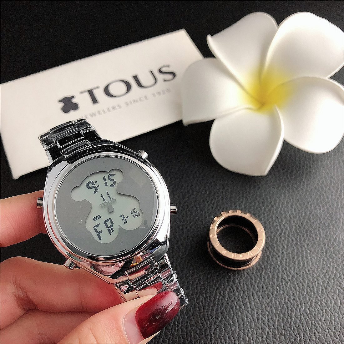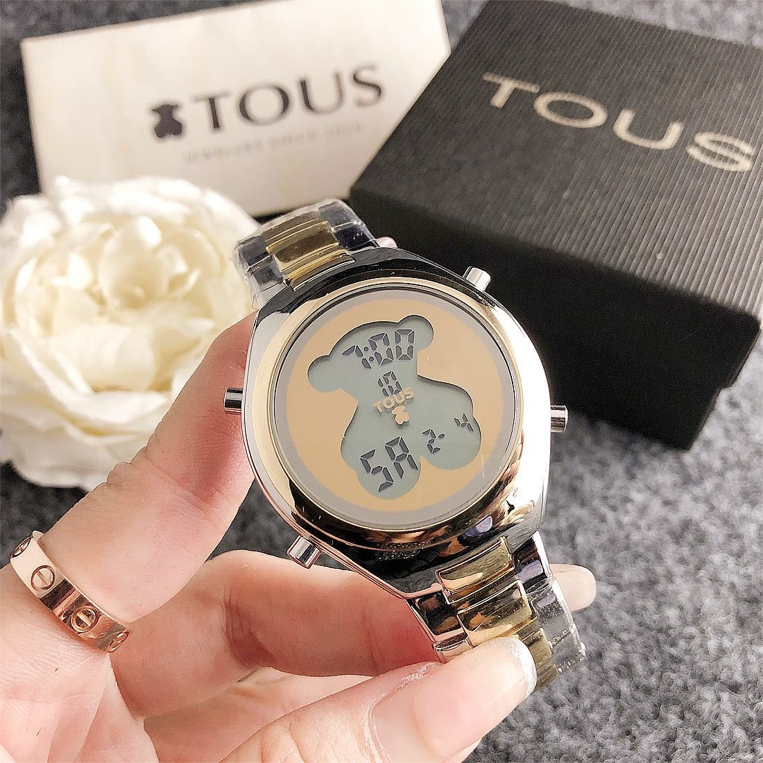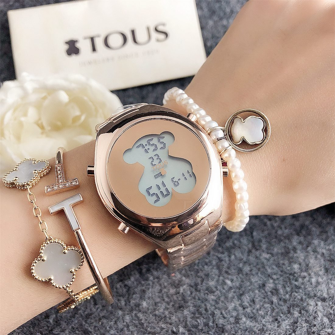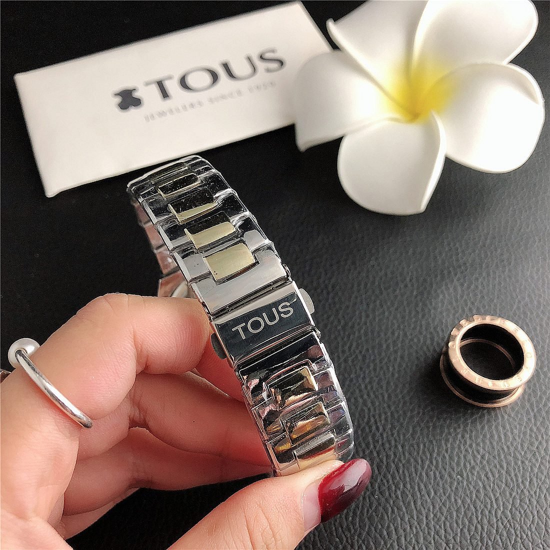 The central position is printed with a peach bear pattern, which is the logo of the TOUS brand, adding unique personality and recognition to the watch.