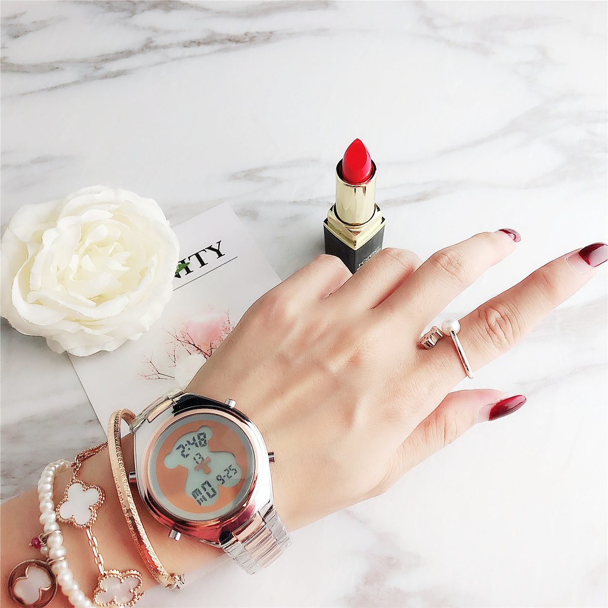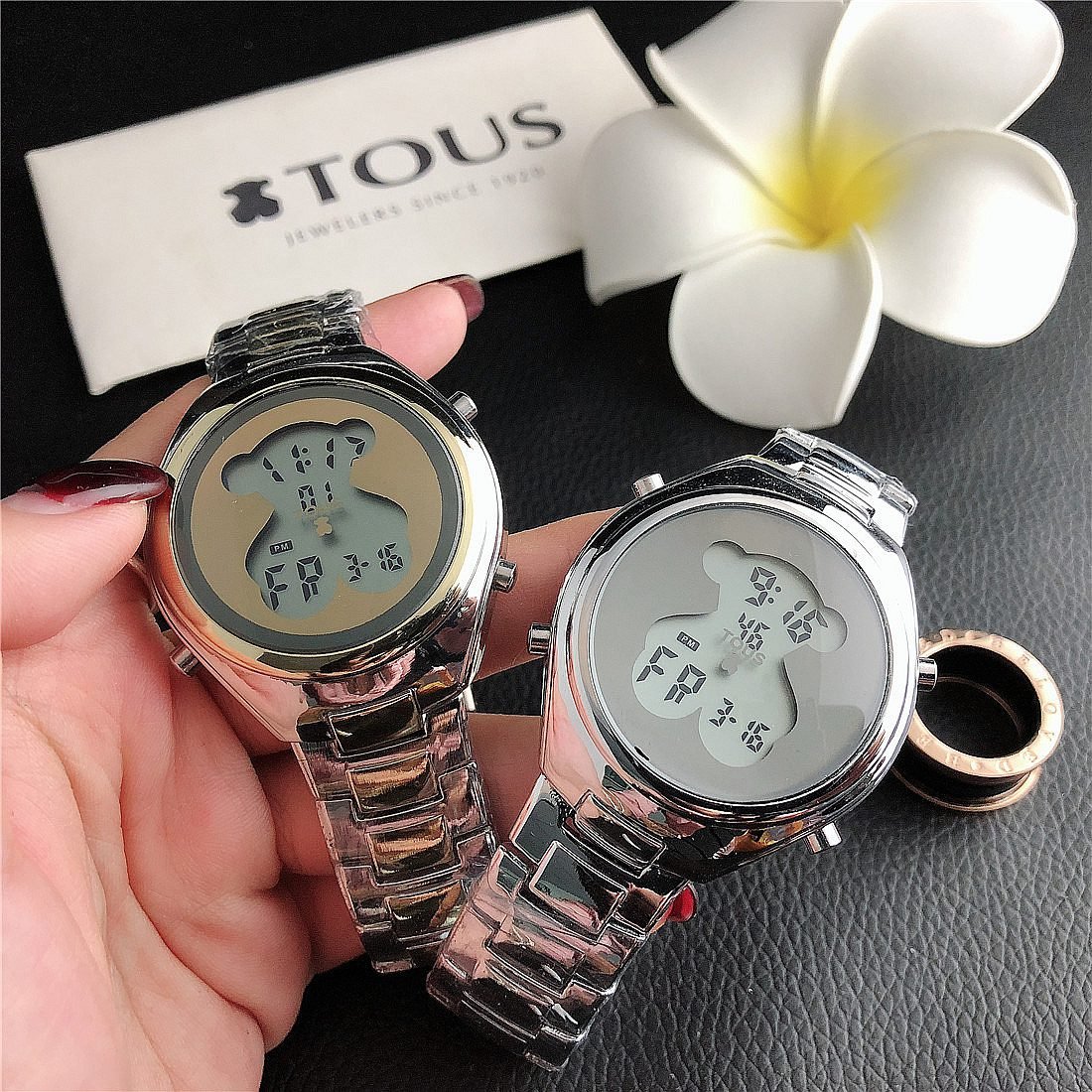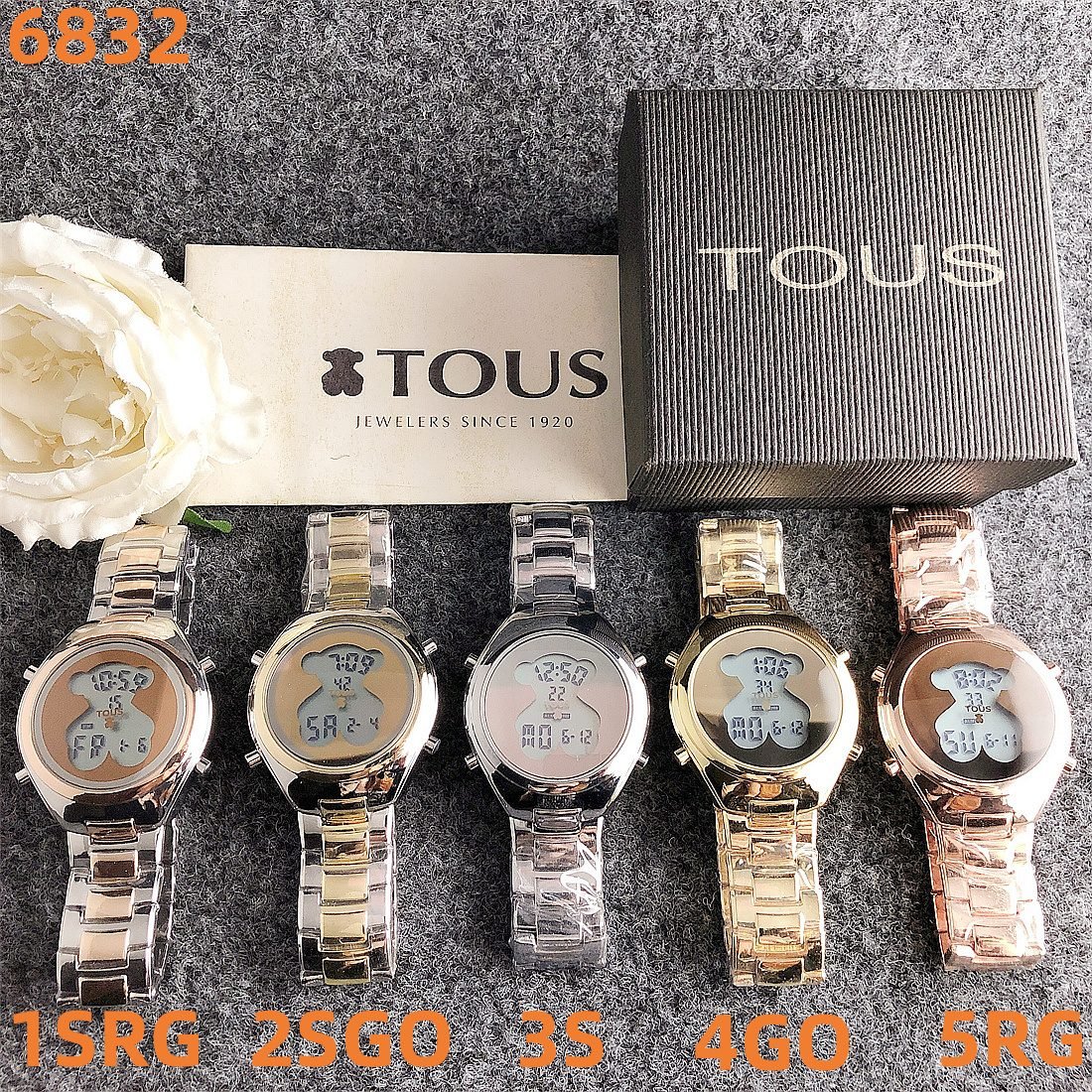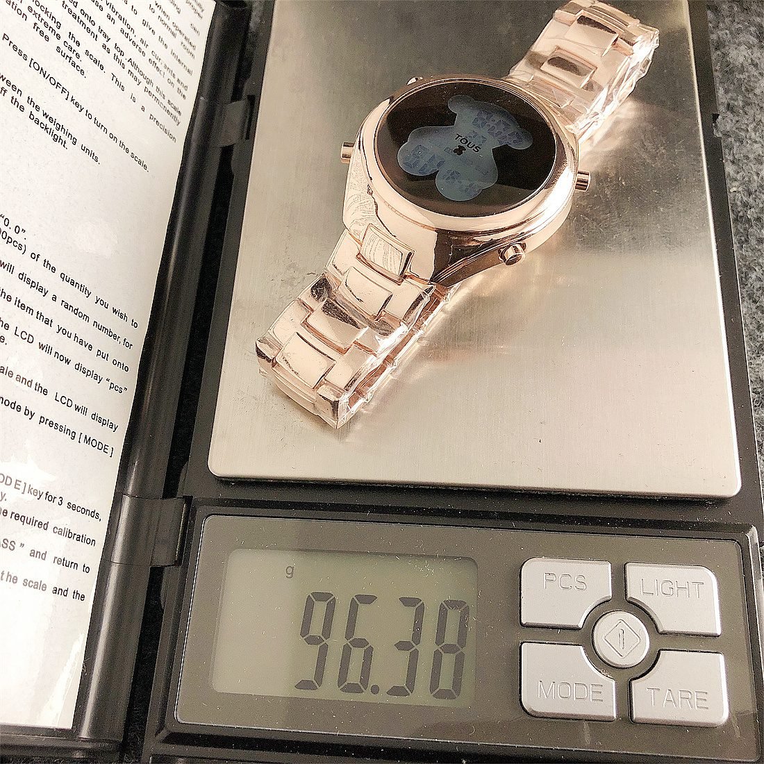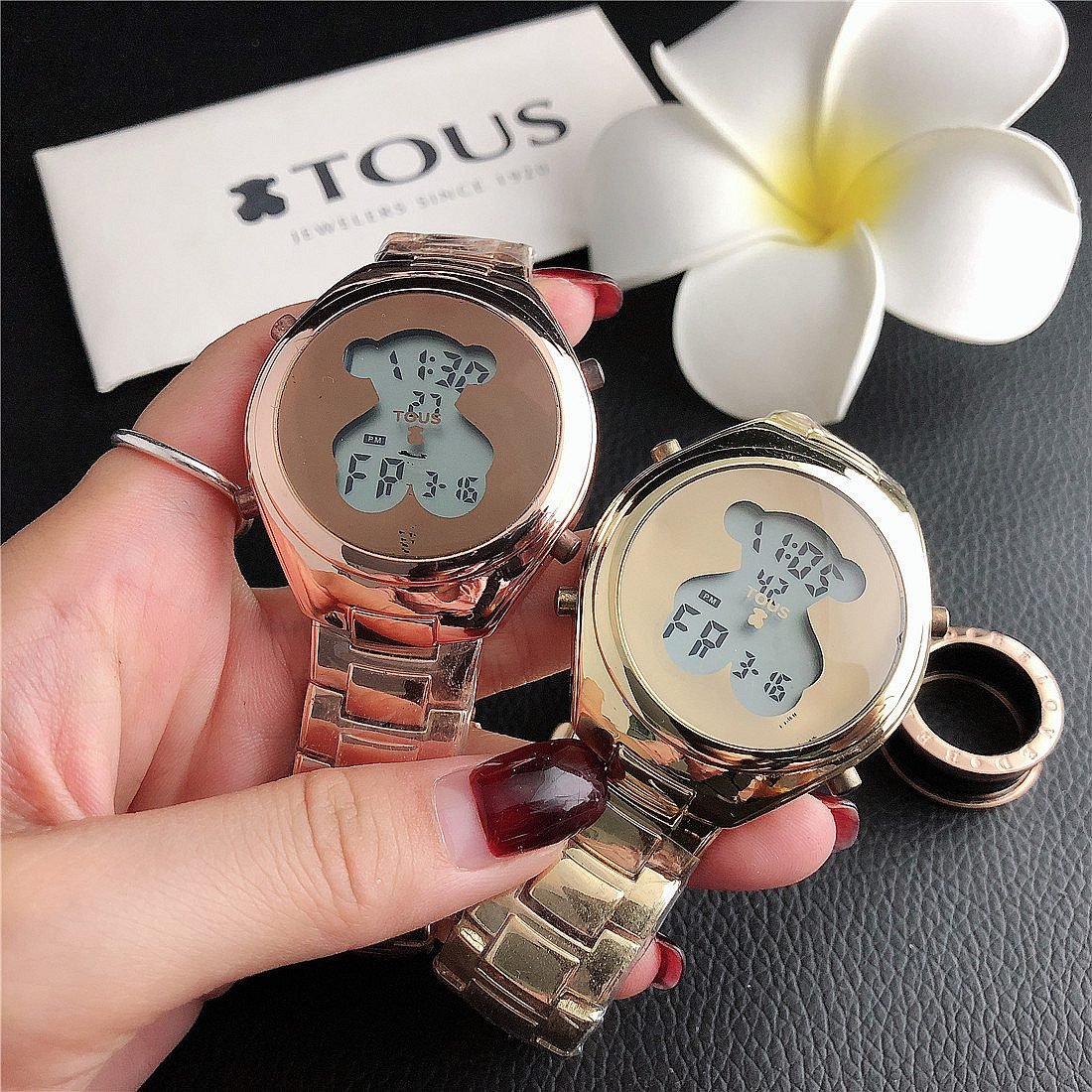 The central position is printed with a peach bear pattern, which is the logo of the TOUS brand, adding unique personality and recognition to the watch.