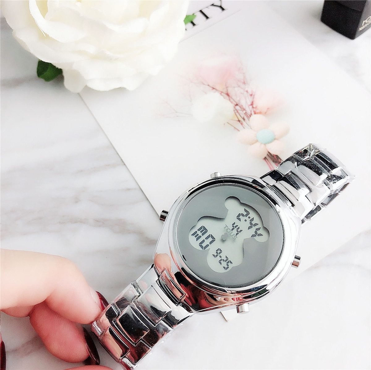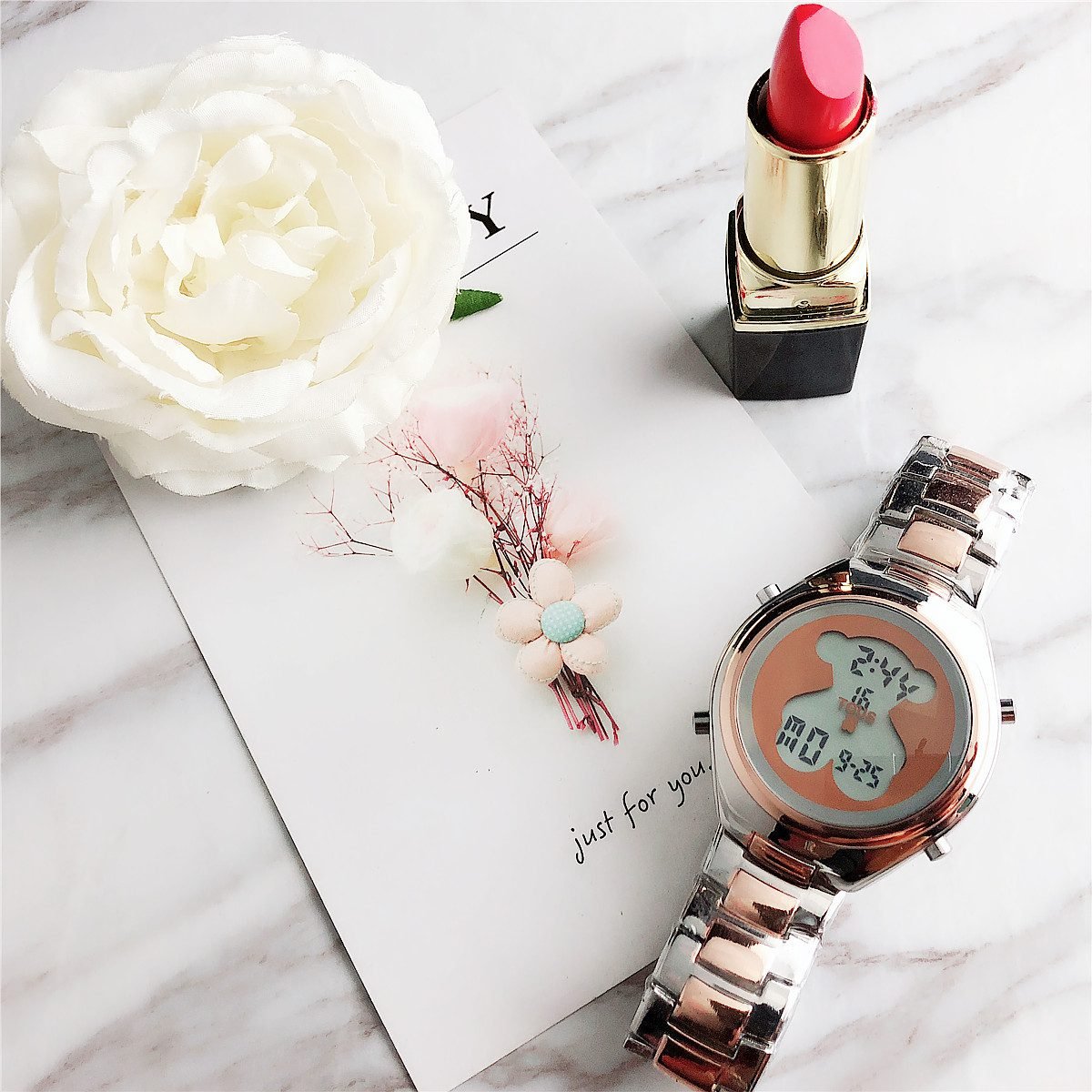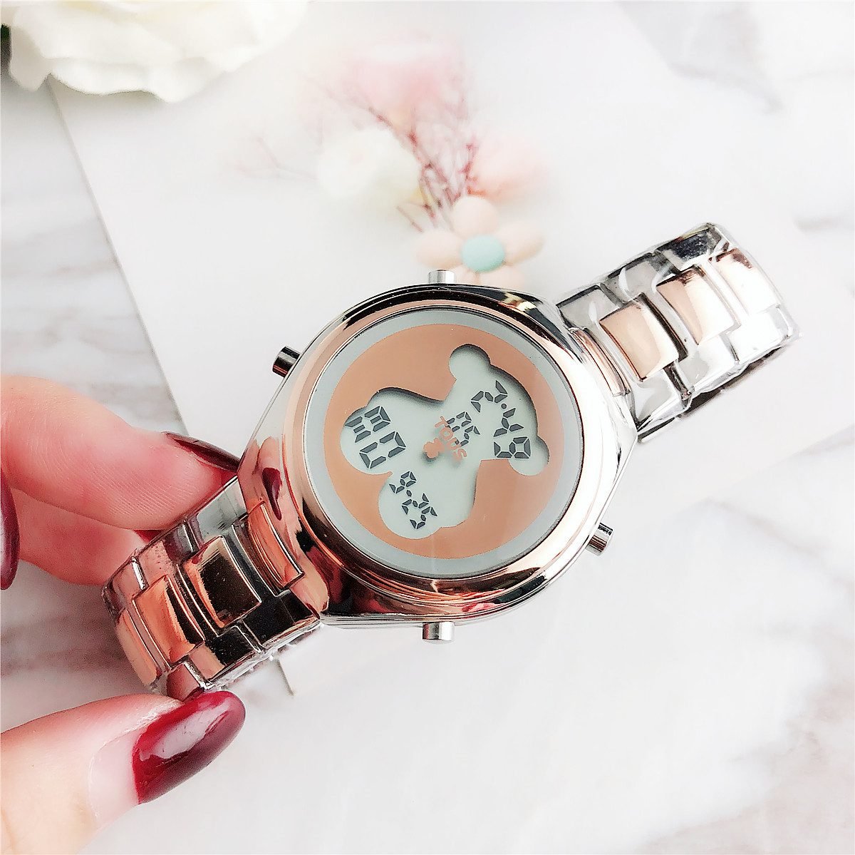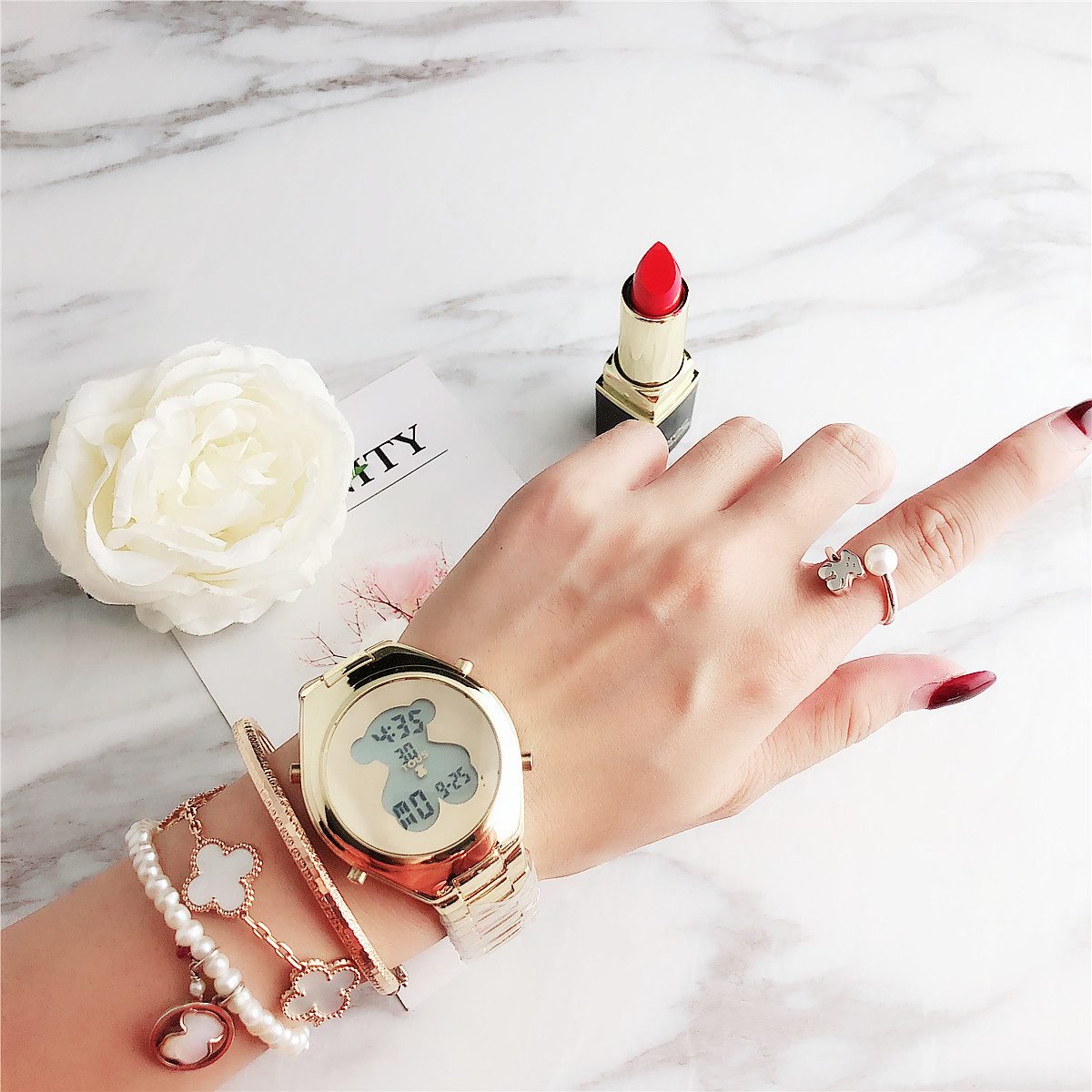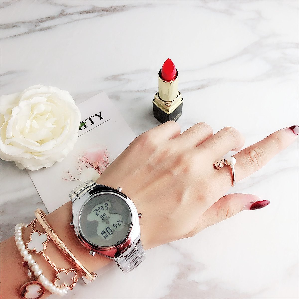 The central position is printed with a peach bear pattern, which is the logo of the TOUS brand, adding unique personality and recognition to the watch.