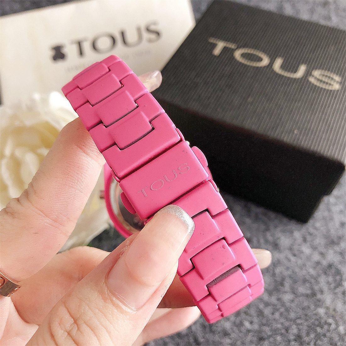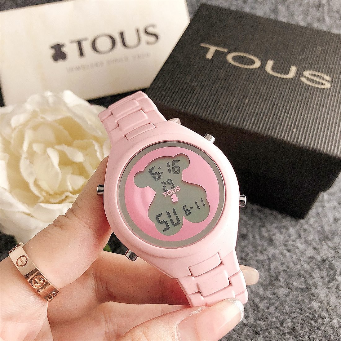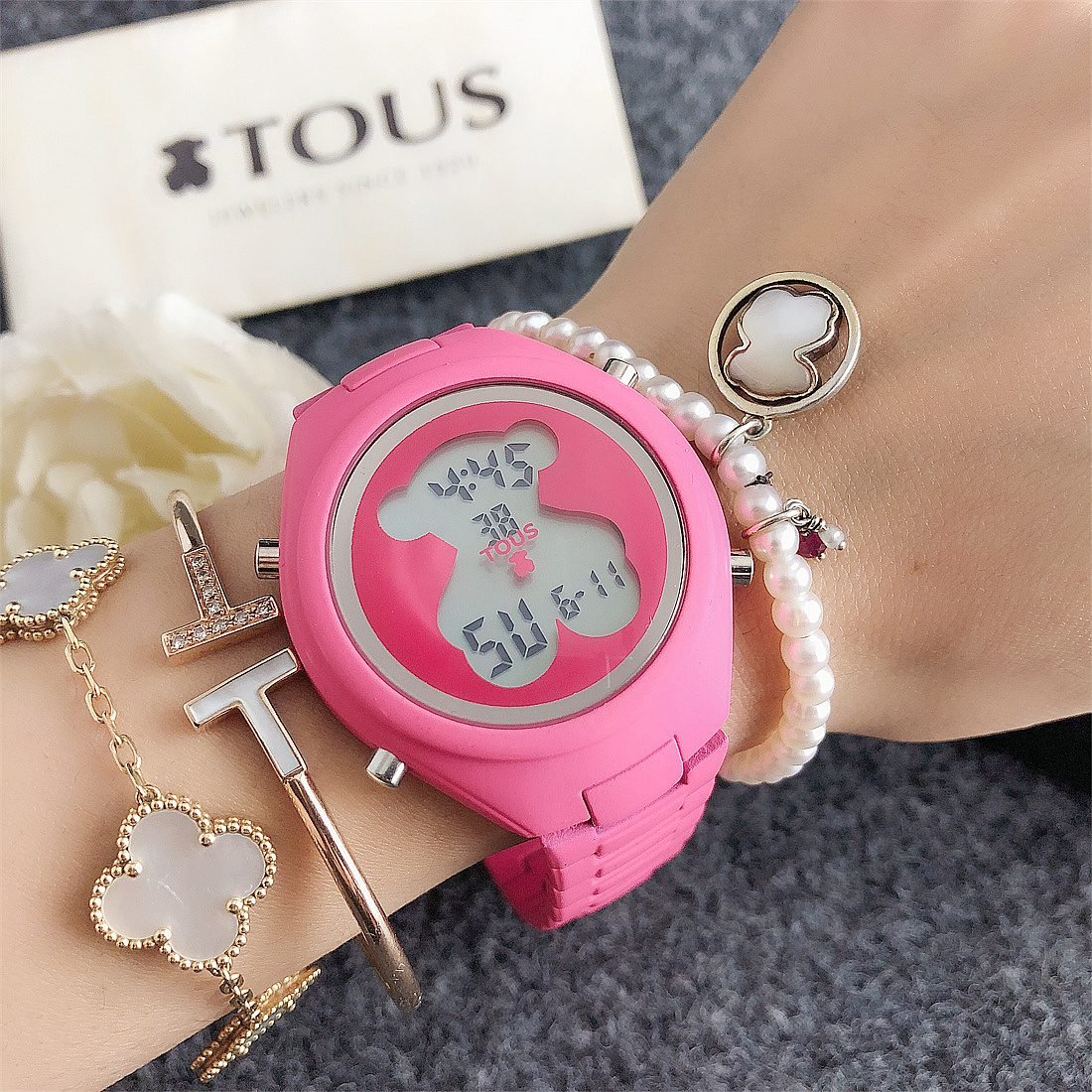 The center of the dial is printed with a peach bear pattern, which is the logo of the TOUS brand, adding unique personality and recognition to the watch. The exquisite details of the peach bear pattern make the entire dial look more vivid and interesting.