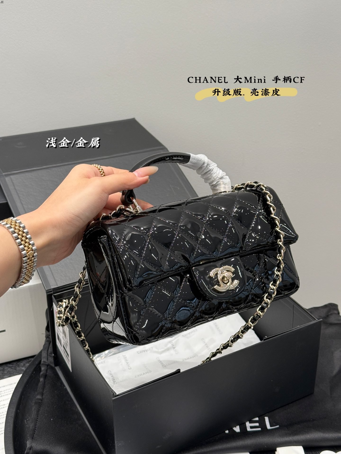 Be the first to review “Upgraded version! Patent leather! Chanel Mini CF handle, light gold hardware! The CF with a handle is more elegant than the regular CF, paired with a skirt and French style. The delicate sheepskin and handle design are personalized and beautiful” Cancel reply