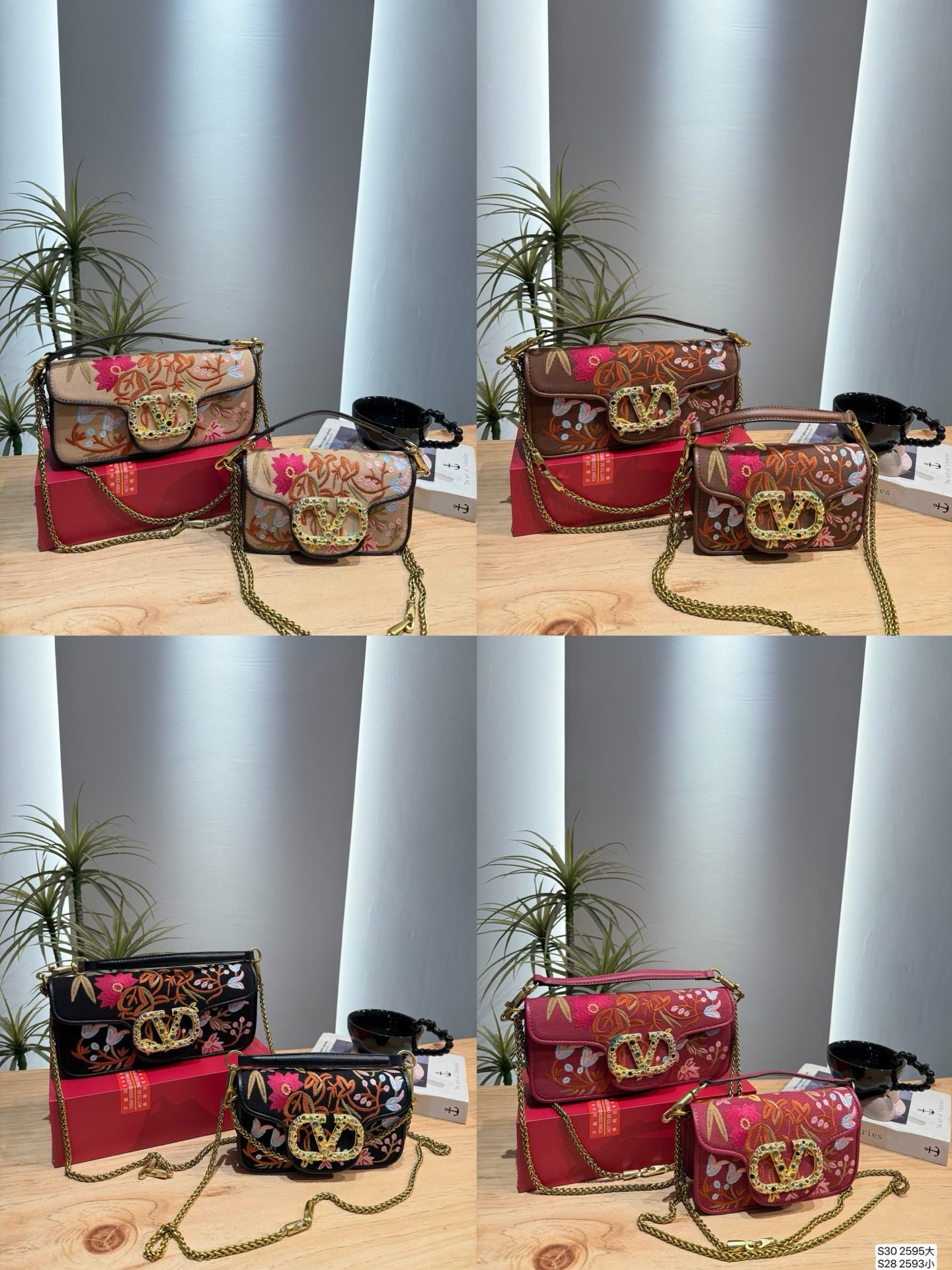 This Valentino embroidered shoulder bag collection showcases intricate floral embroidery and the iconic V-logo hardware, available in two sizes—27×12cm (large) and 20×11cm (small). Crafted with exceptional artistry, these bags blend bohemian charm with luxury craftsmanship. Perfect for those who appreciate wearable art and distinctive design, they elevate any look with vibrant details and timeless sophistication—ideal for making a statement whether you choose the spacious large size or the compact small variant.