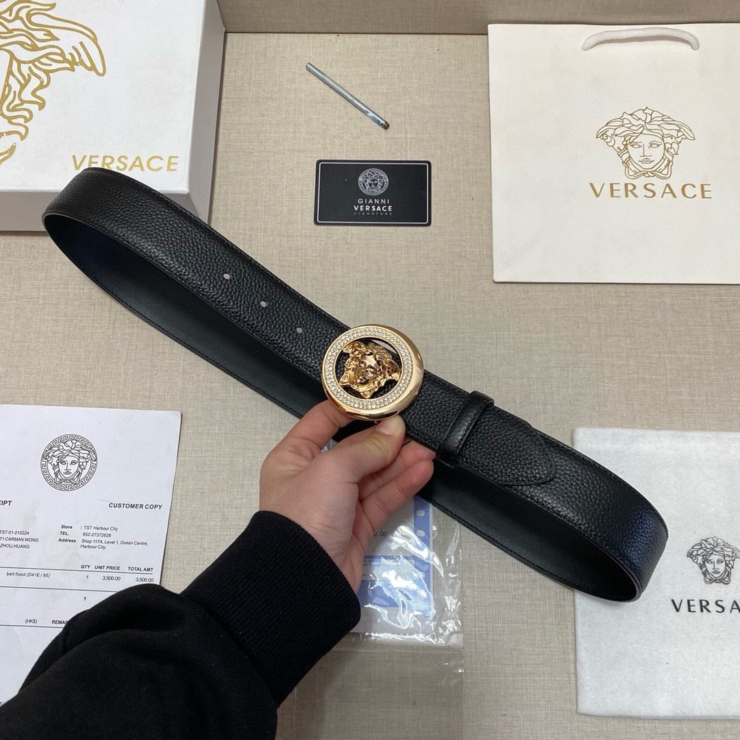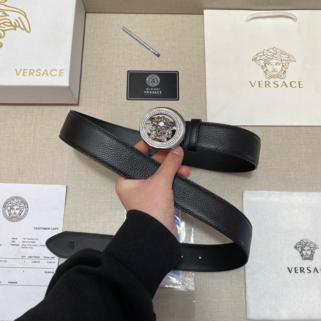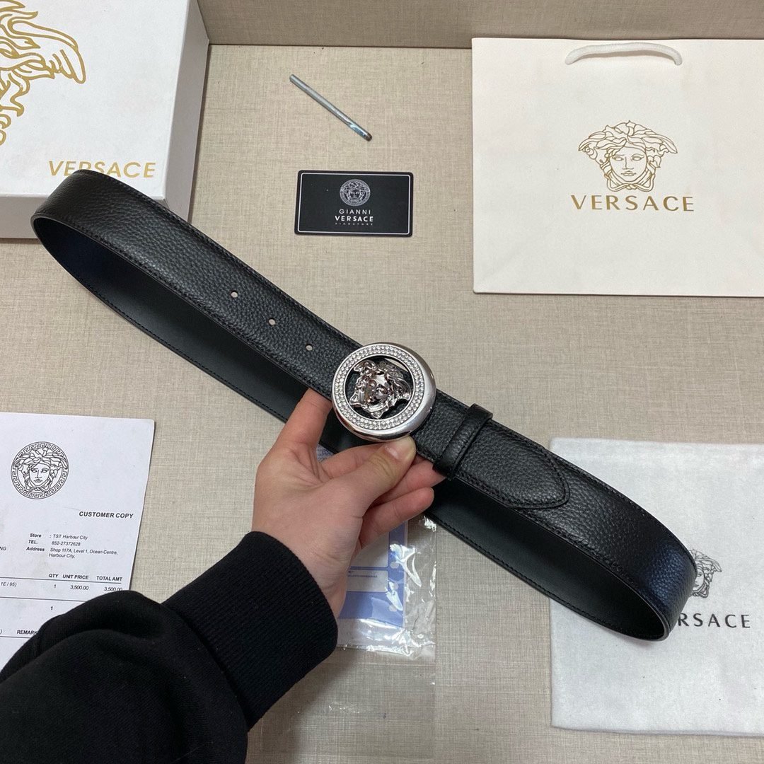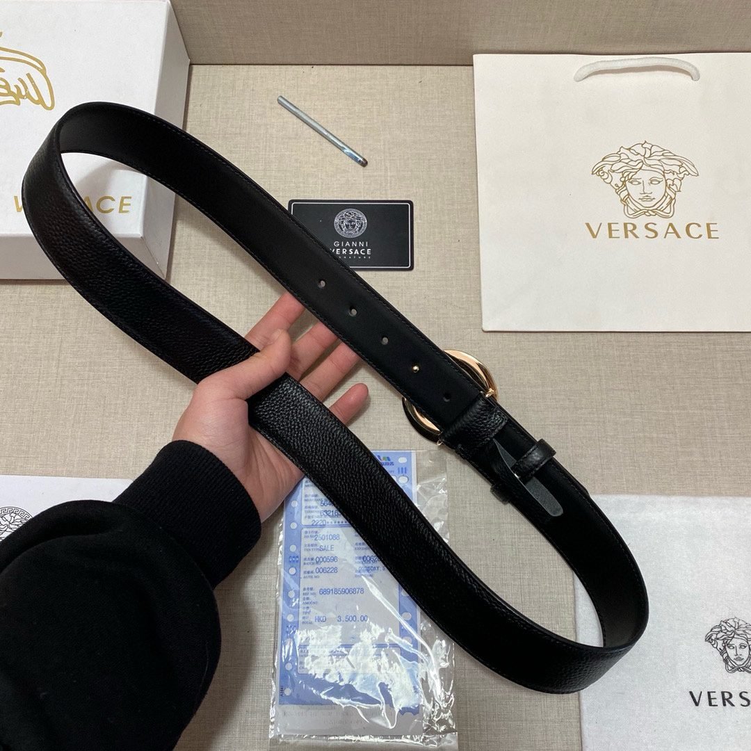Home Belt VERSACE Belt Versace circular Medusa embossed buckle with black belt, simple and elegant, low-key and luxurious