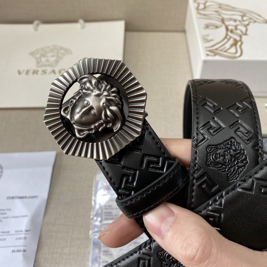 Versace classic Medusa embossed black textured belt, simple, atmospheric, low-key, luxurious $210.00 Original price was: $210.00.$66.69Current price is: $66.69.