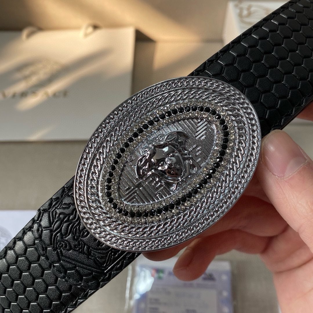 Home Belt VERSACE Belt Versace Classic Circular Buckle Black Plaid Belt Classic Fashion Noble and Elegant