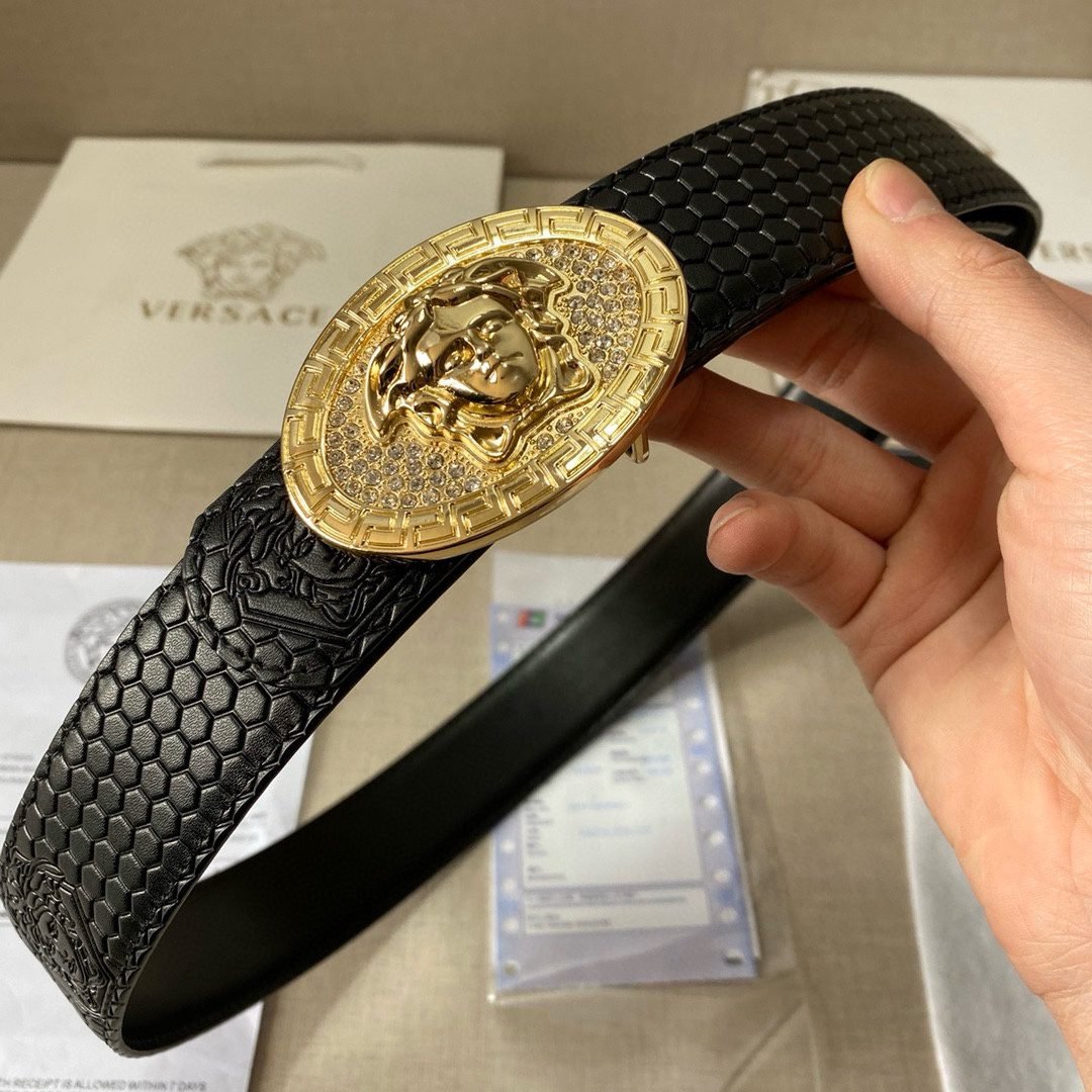 Home Belt VERSACE Belt Versace Classic Circular Buckle Black Plaid Belt Classic Fashion Noble Luxury