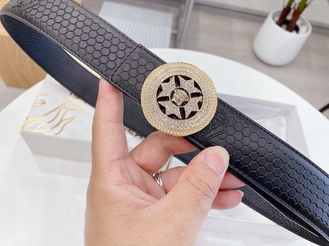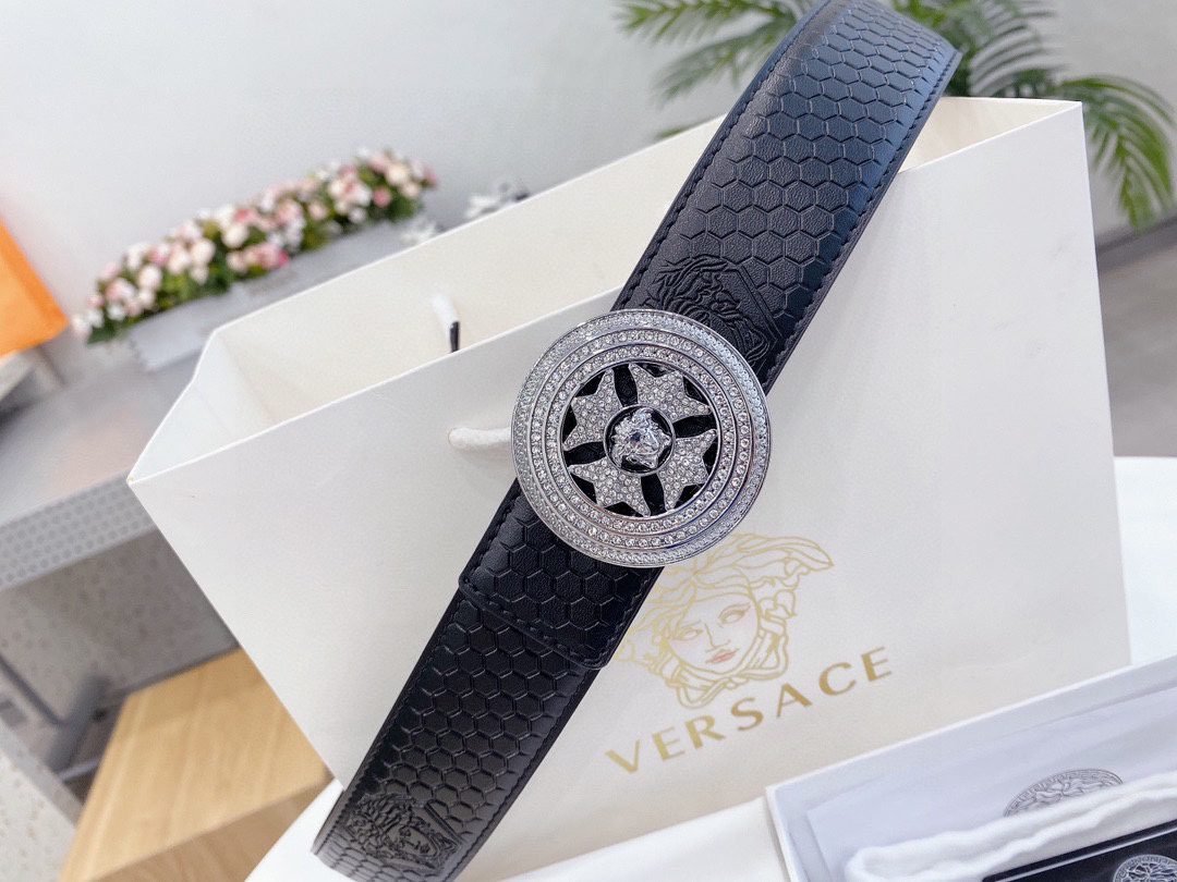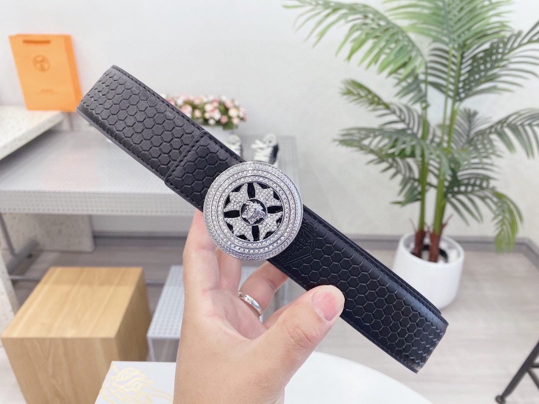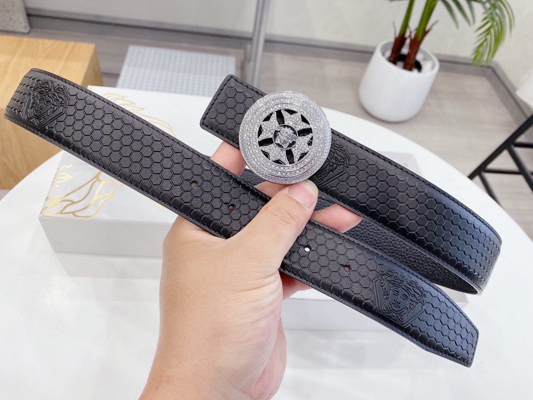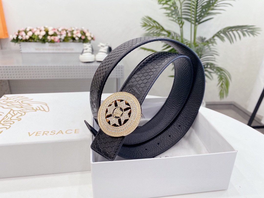 Home Belt VERSACE Belt Versace Classic Circular Buckle Black Plaid Belt Simple, Fashionable, Noble, and Elegant