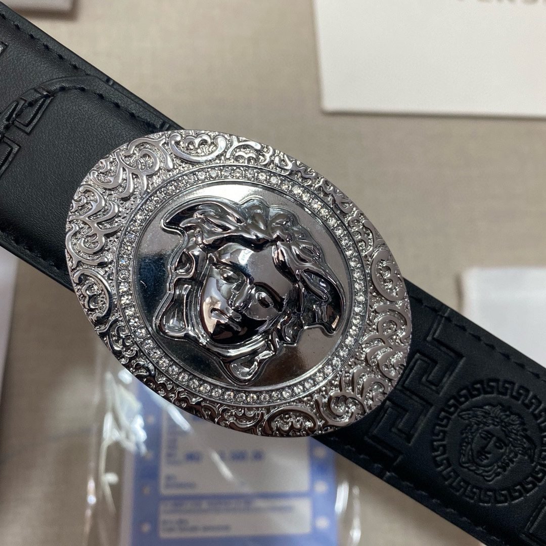 Versace Classic Circular Buckle Black Texture Belt Simple and Elegant Classic Fashion
