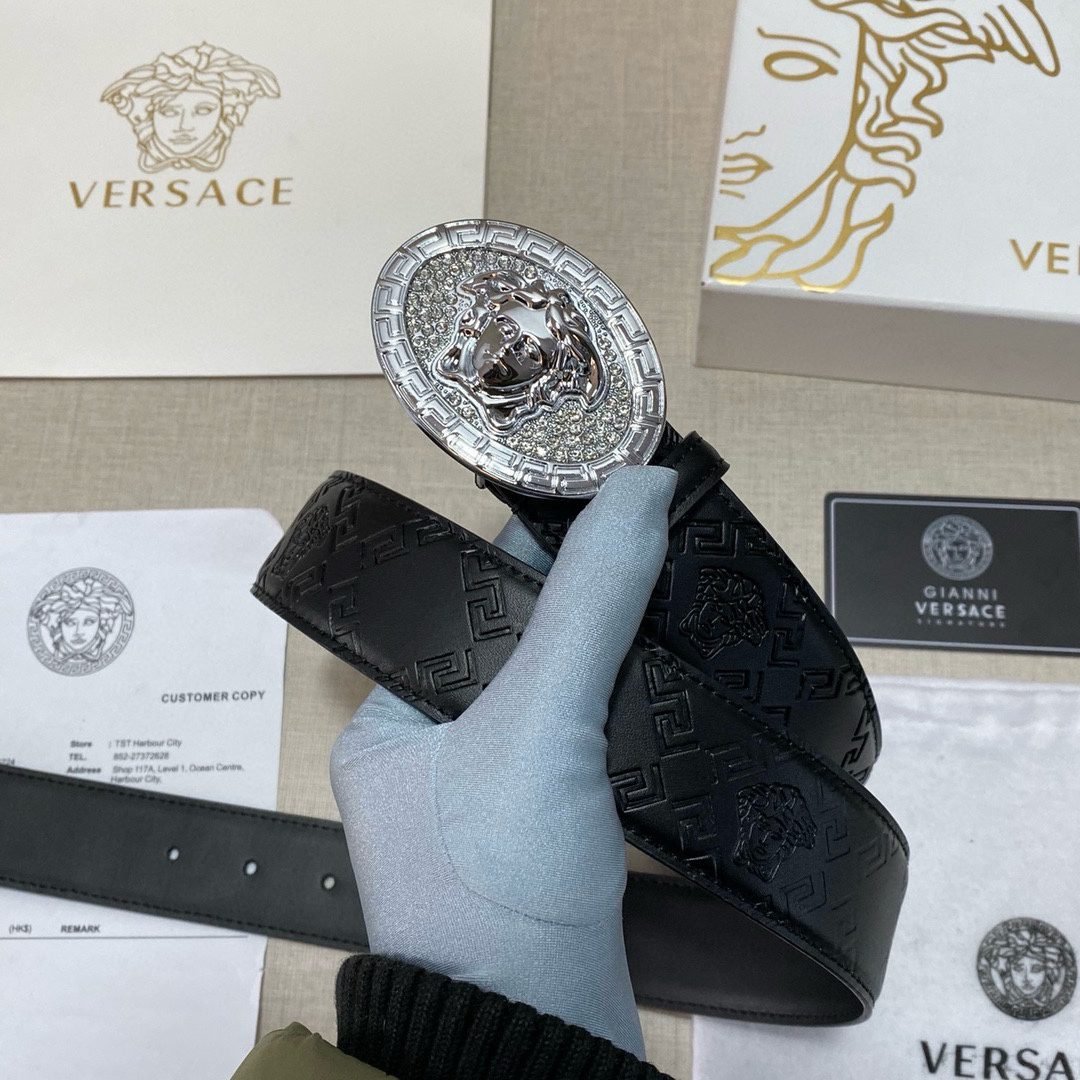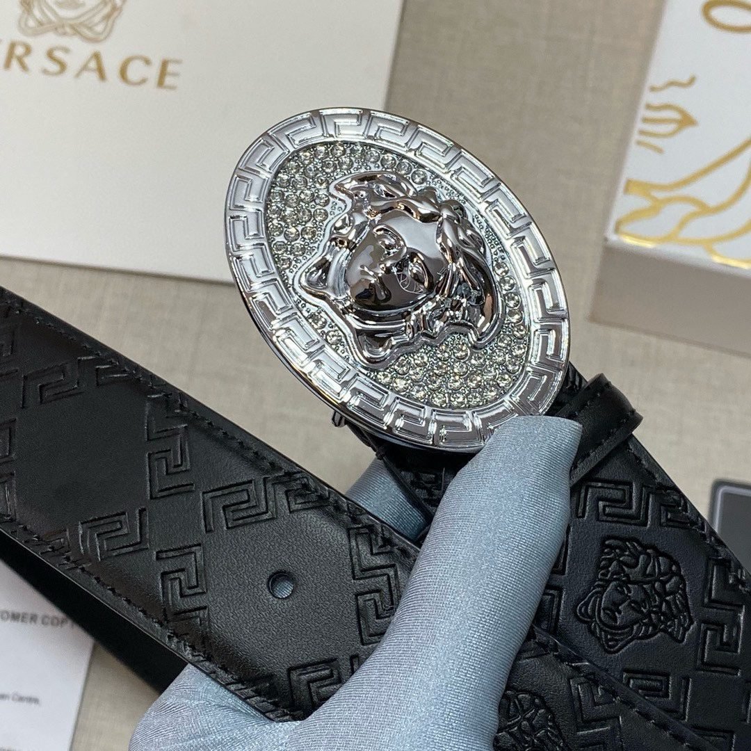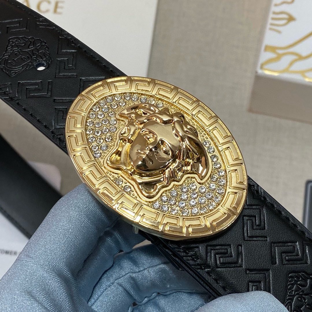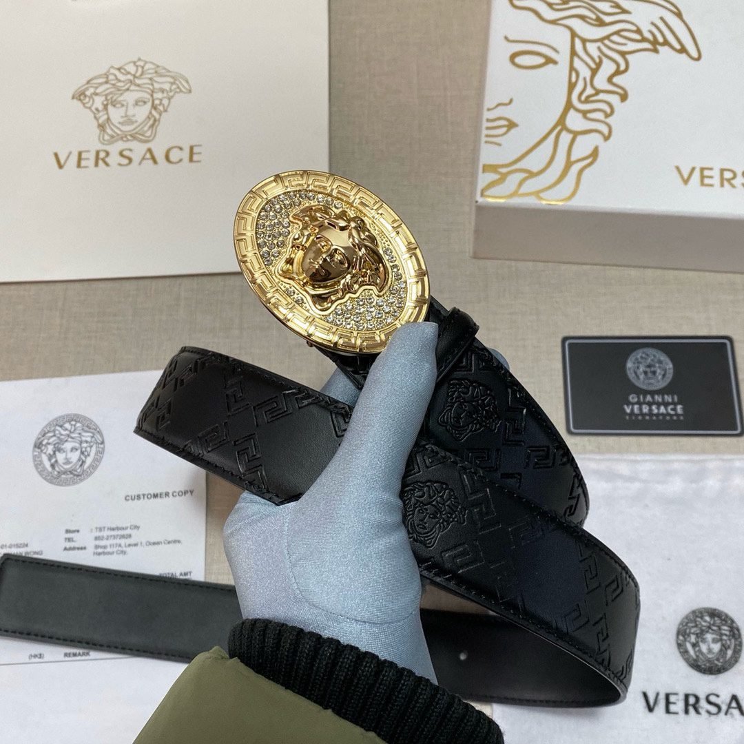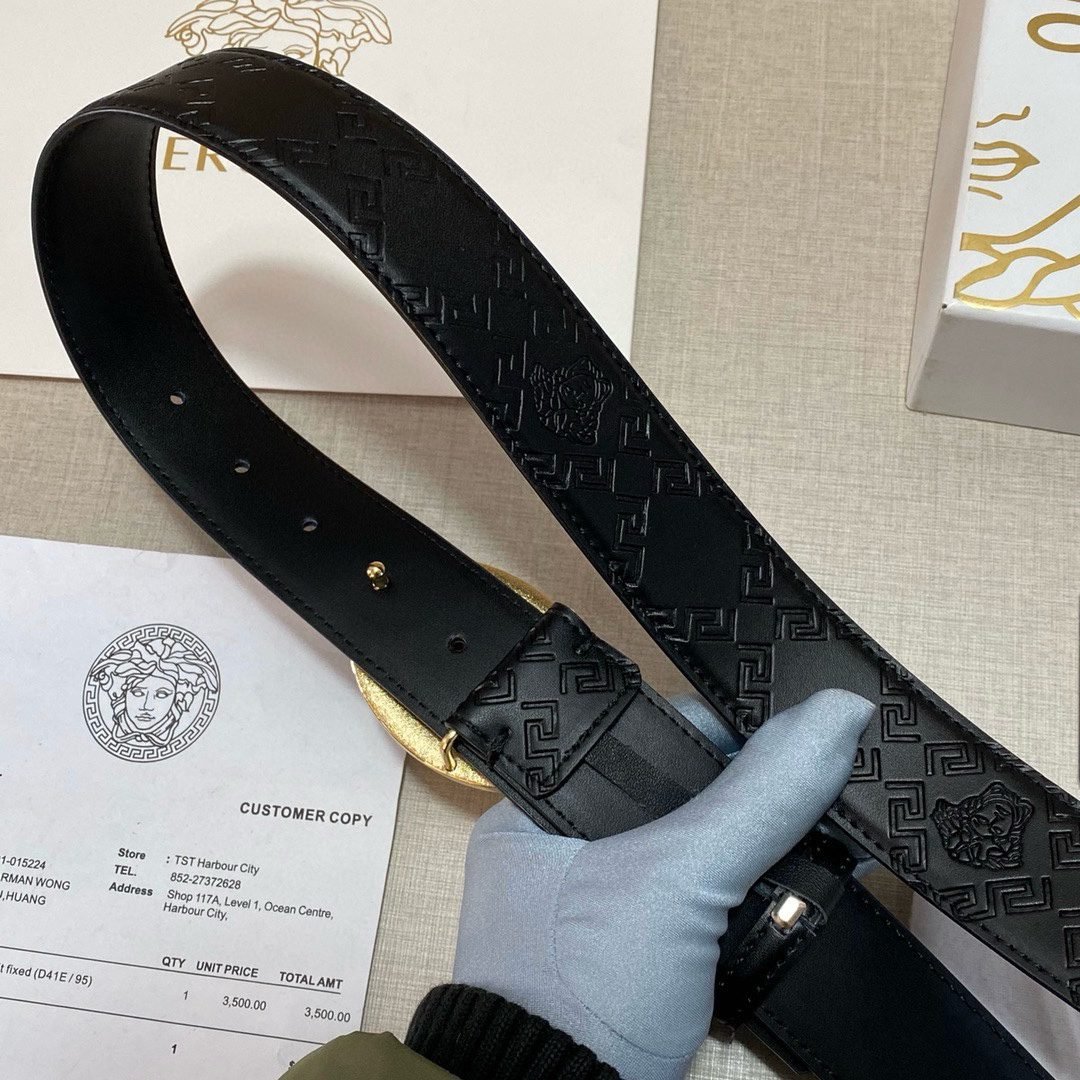 Versace Classic Circular Buckle Black Texture Belt Simple and Elegant Classic Fashion