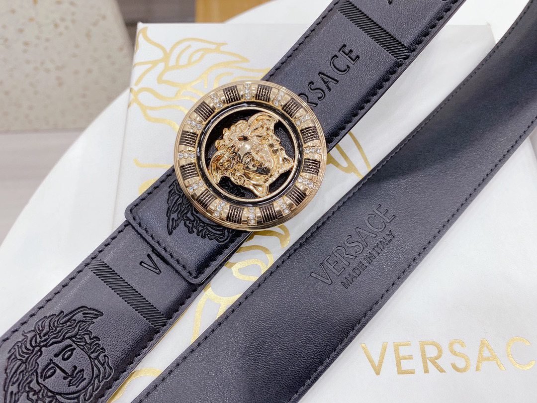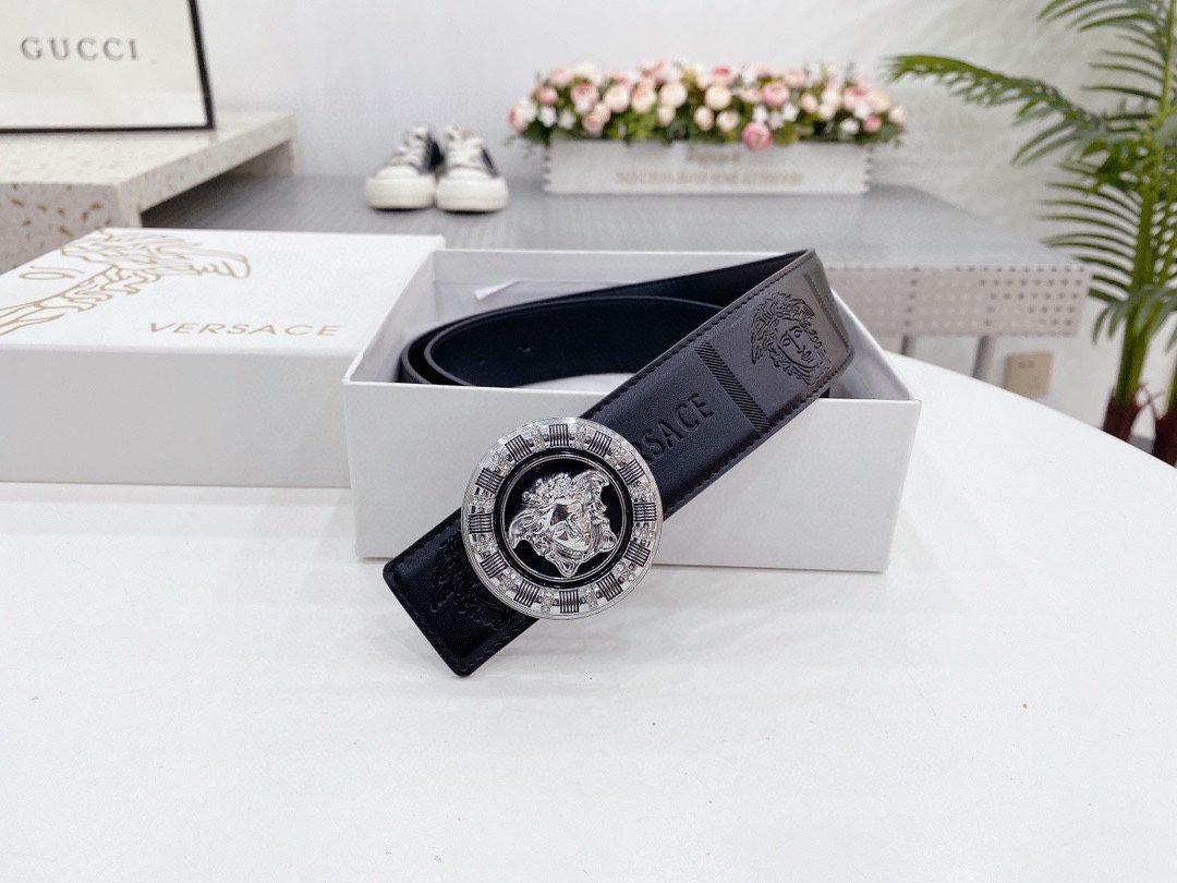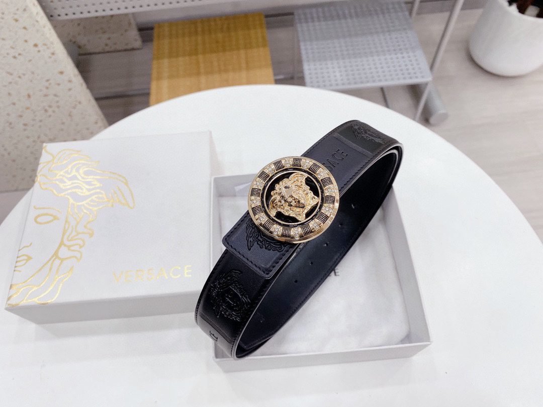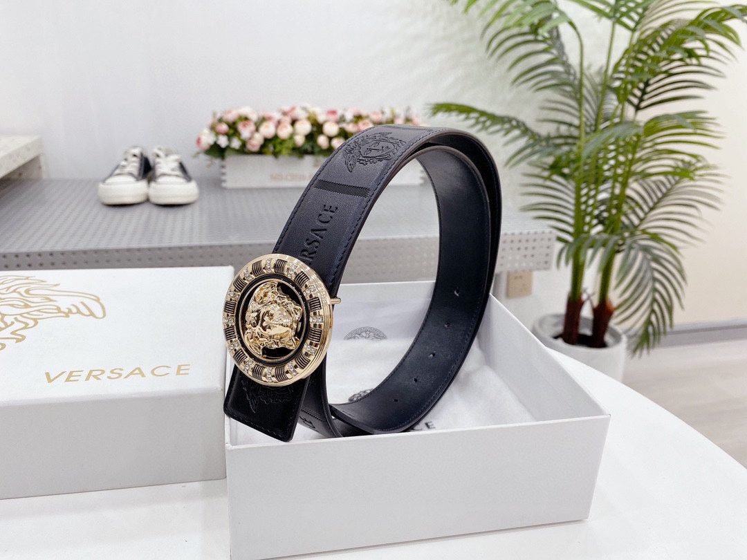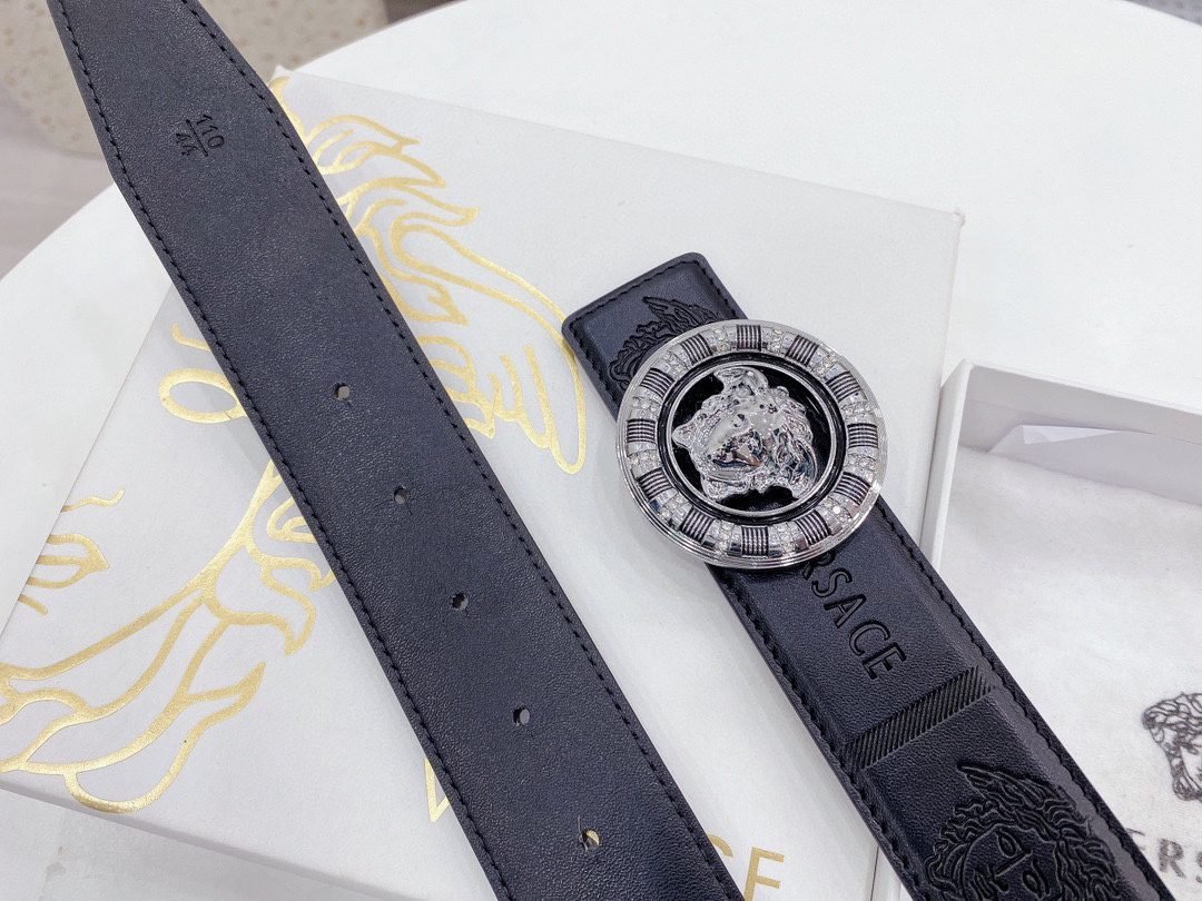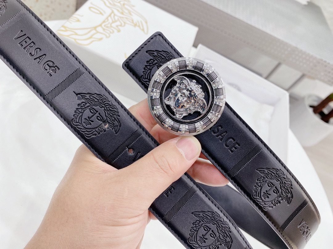 Versace Classic Circular Buckle Black Texture Belt Simple, Fashionable, Noble, Luxury