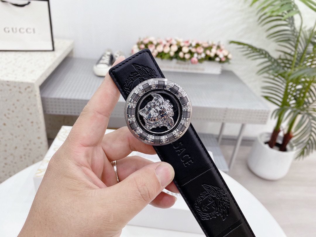 Home Belt VERSACE Belt Versace Classic Circular Buckle Black Texture Belt Simple, Fashionable, Noble, Luxury
